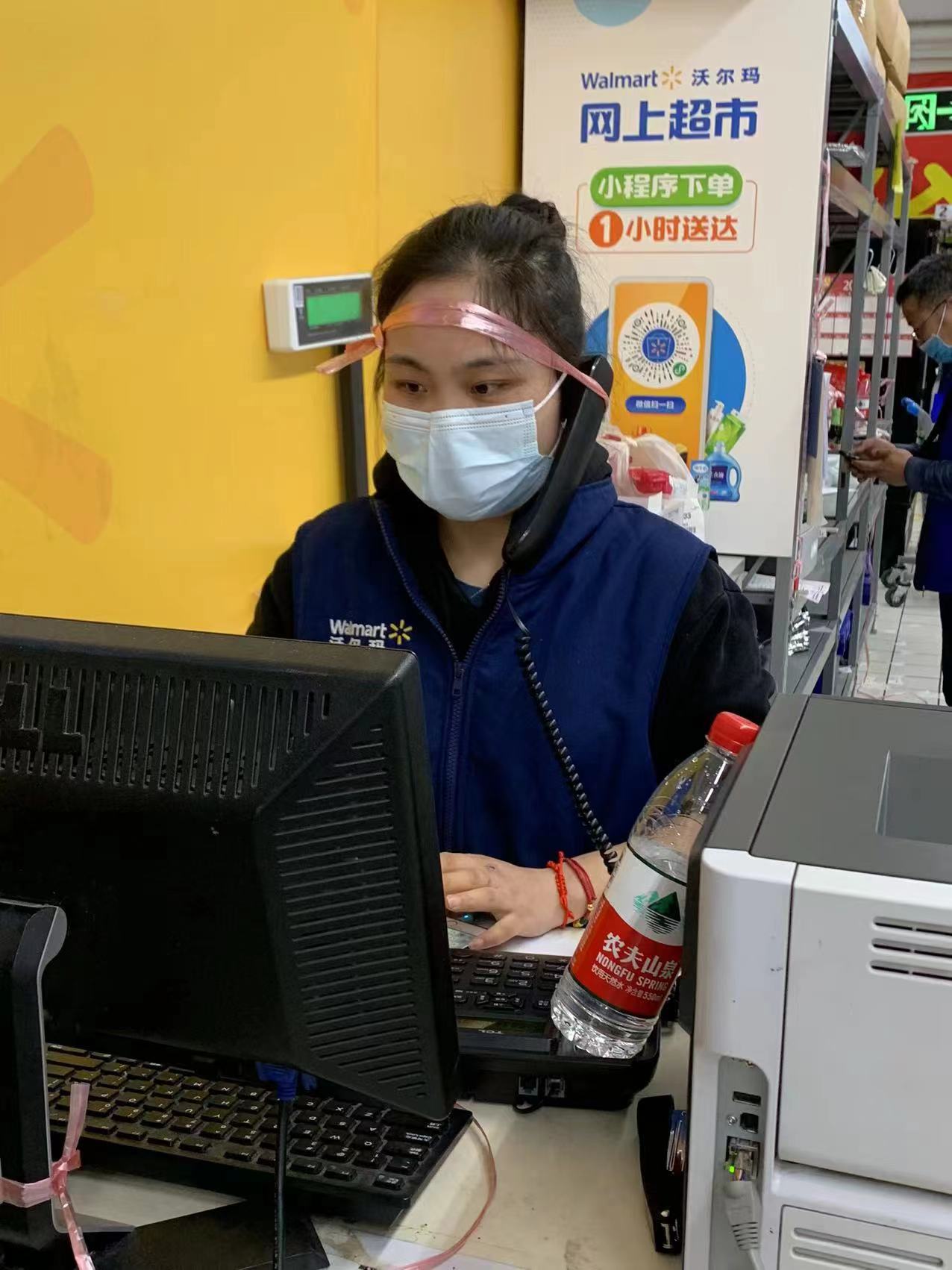 这几天,一名浦东沃尔玛超市的女员工上了浦东发布的抖音号,原因是她头上缠着电话听筒的照片,让网友直呼又好笑又心疼。记者找到视频的主角了解到,女员工名为李敏妹,是沃尔玛上海凌云店O2O电商主管,照片是同事看到她的工作状态觉得很有趣,随手拍的。而她之所以“不顾形象”,只因为一个字:忙。