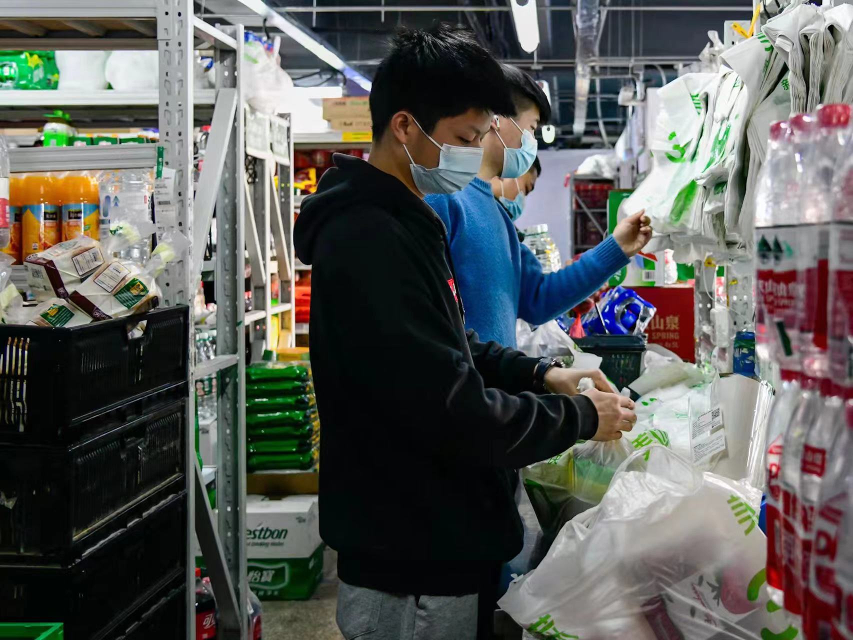 美团买菜鹤诸路站站长赵宇航告诉记者,除去被隔离的员工,今天该前置仓内在岗人数18人,配送人员25人。每天早上六点正式开工,这里几乎每个人的工作量都已是翻番。