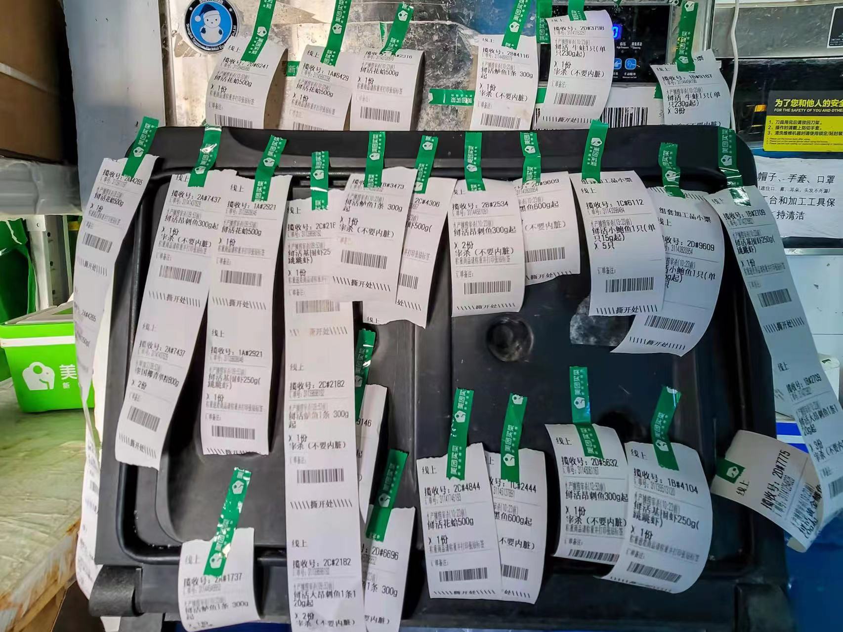 分拣员岗位是第一个接收到订单信息的环节。根据订单内容,分拣员的主要任务是将分配在不同货架的商品,在检查是否合格后,根据重不压轻、不同温层、易碎品单独打包等原则,以最快速度整理在一起,等待配送员取货。