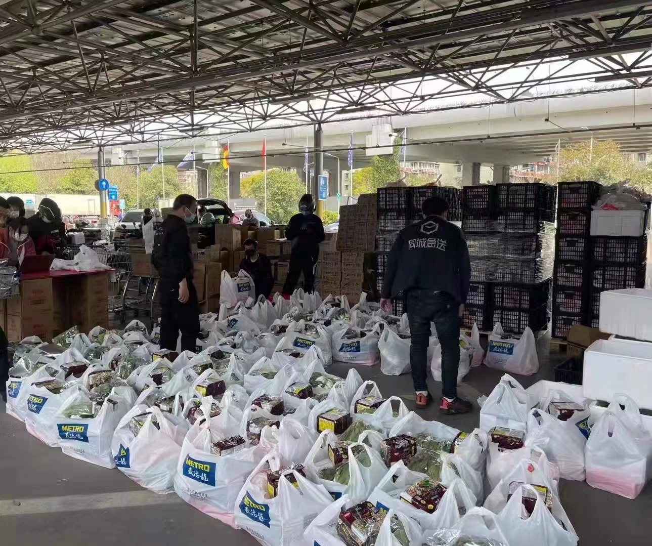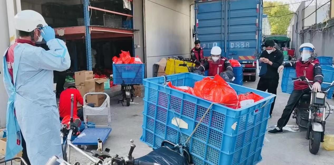 在覆盖浦东核心地段的顺丰金穗集配站,有一支14人组成的顺丰快递团队。近日,附近居民生活保障需求越来越大,而商家配送压力很大,没有充足的人员配送,金穗集配站负责人韩涛接到一位快递小哥的来电,反馈某一商户作为线上线下同时运营的生鲜超市,有大批量的蔬菜、日用品等紧缺物资订单需要紧急配送,站点负责人马上与生鲜店老板电话联系,双方一拍即合,达成合作共识。14人团队迅速上岗,化身为电商、生鲜配送的“外卖员”,为塘桥街道、洋泾街道、花木街道及时地送去疏菜水果,确保居民收到的疏菜水果更新鲜,有效释放了商家配送压力。