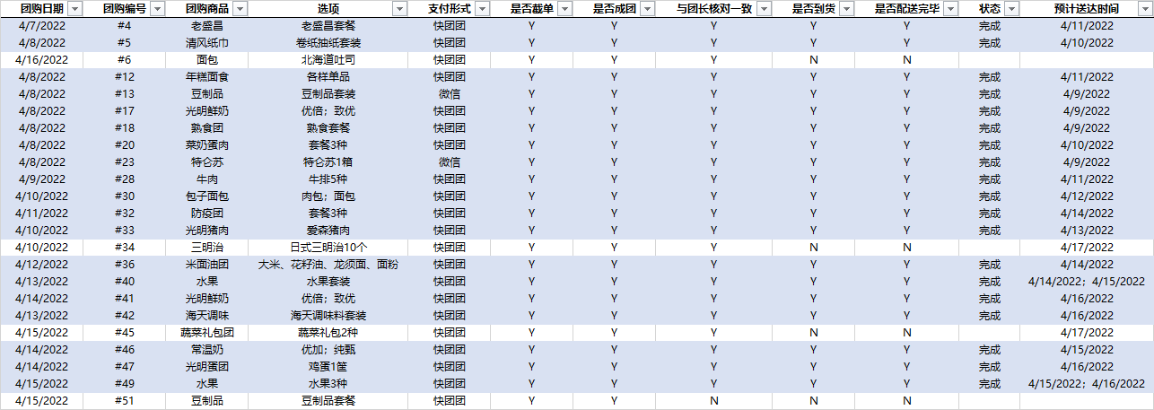 第二部分则是核对订单信息和实际付款的匹配,排查出付款不成功或是重复购买的小区居民,进行沟通与解决。最后还需要制作团购的进度表、随时跟踪团购的进展。“规范了流程后,大部分可以使用excel宏自动匹配。”蔡敏没多久就成为了小区的“出纳熟手”。