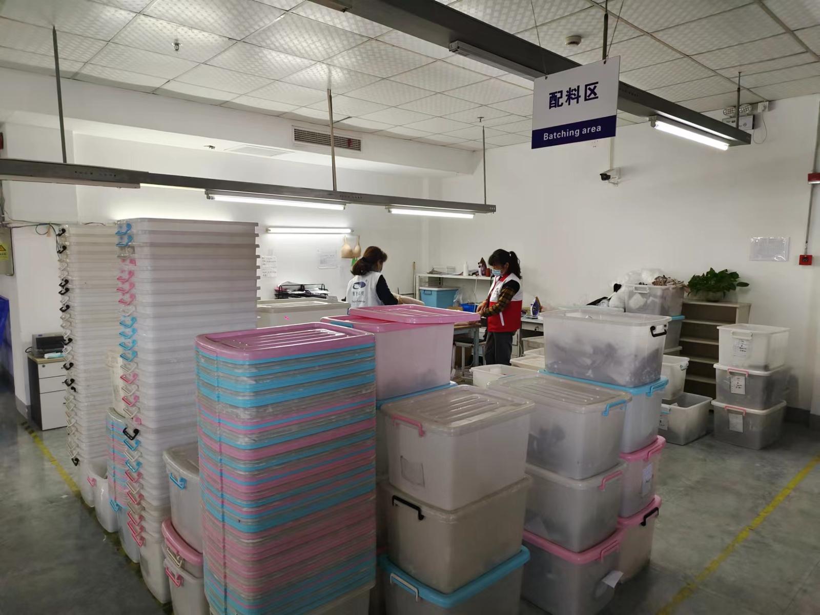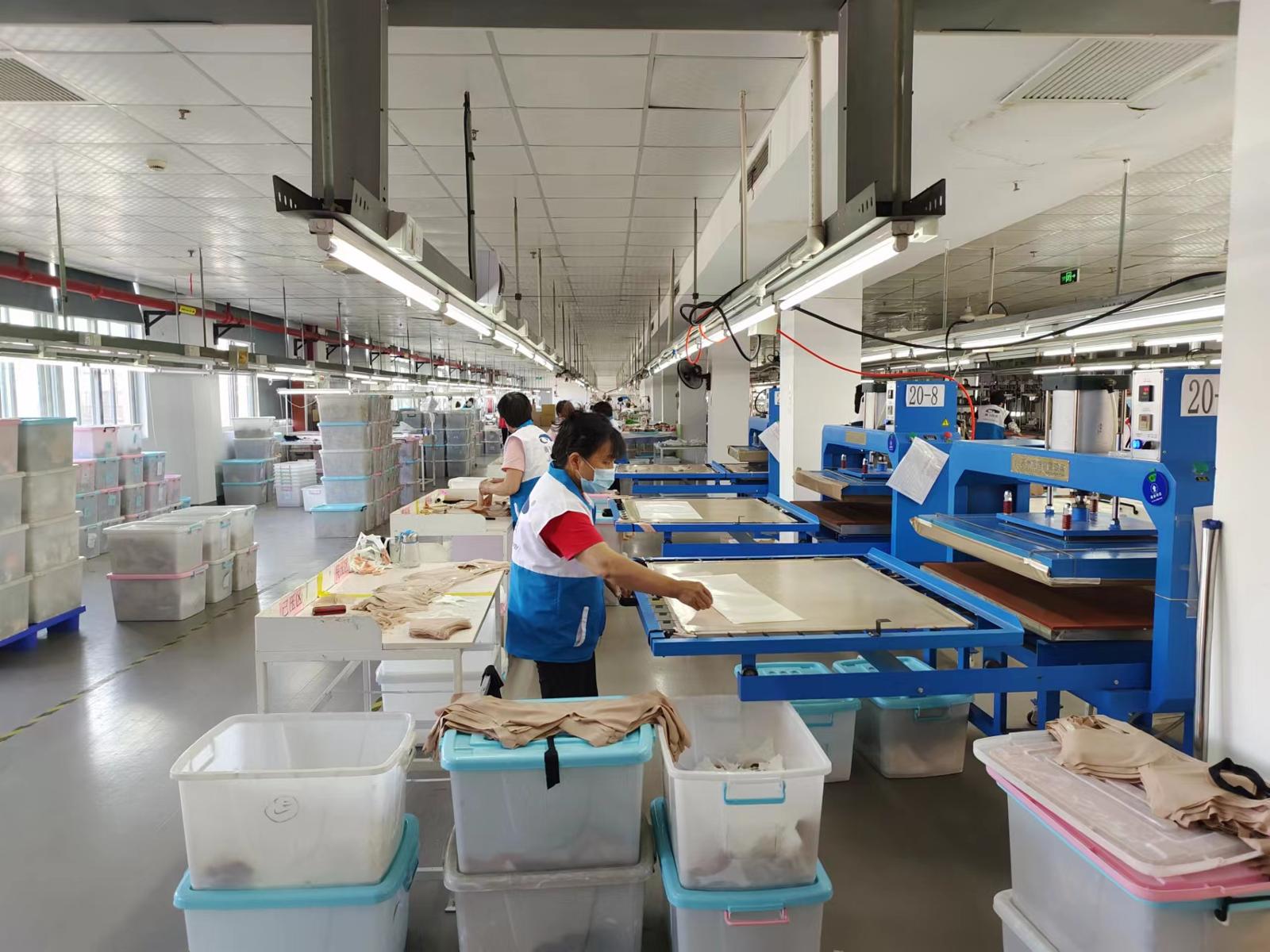 每层楼面的功能不同,从裁料、打版到缝纫,拼接,环环相扣。在现场,已有不少工人佩戴口罩稳坐在操作台前,完成工作。据透露,针对一部分不能返岗的员工,企业采取了“送缝纫机、送材料上门”的模式,让一部份员工实现“居家办公”。