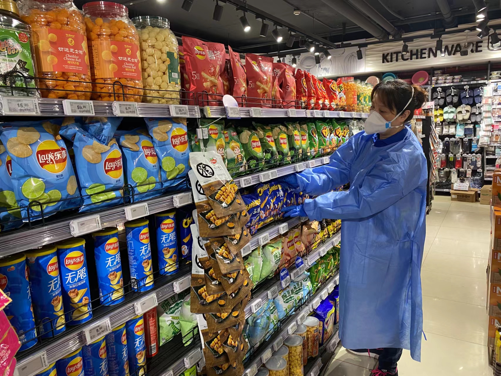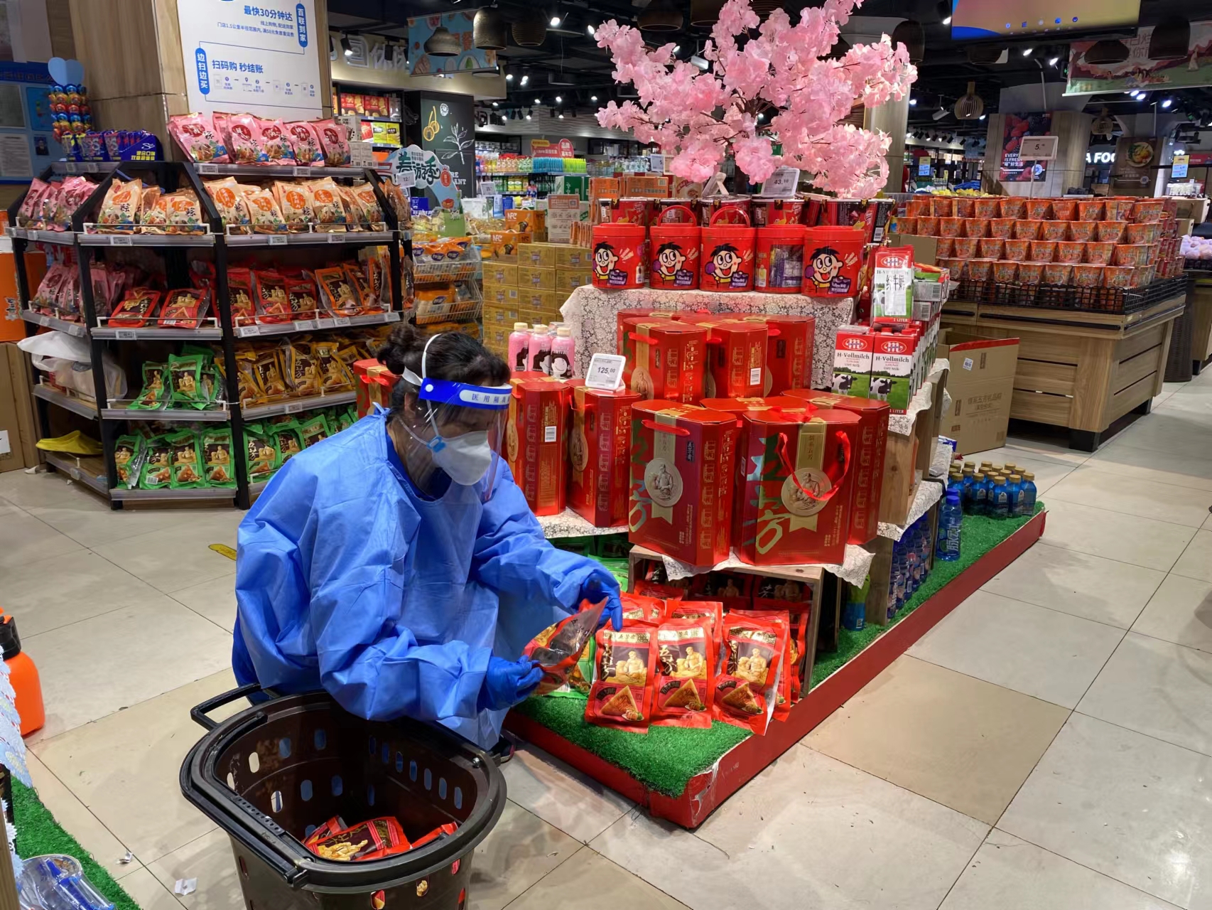 如果门店不真正开门迎客,又需要面对大量订单,那么超市职工就需要理货、分拣、分类买单,产生大量的工作量,且因夜间进货来货,她们还要熬过一个又一个“难眠夜”。而如果能够恢复线下营业,那么完成上架、理货、消杀后,市民能够走进店里自由选购,就剩下买单的程序,会相对轻松一些。