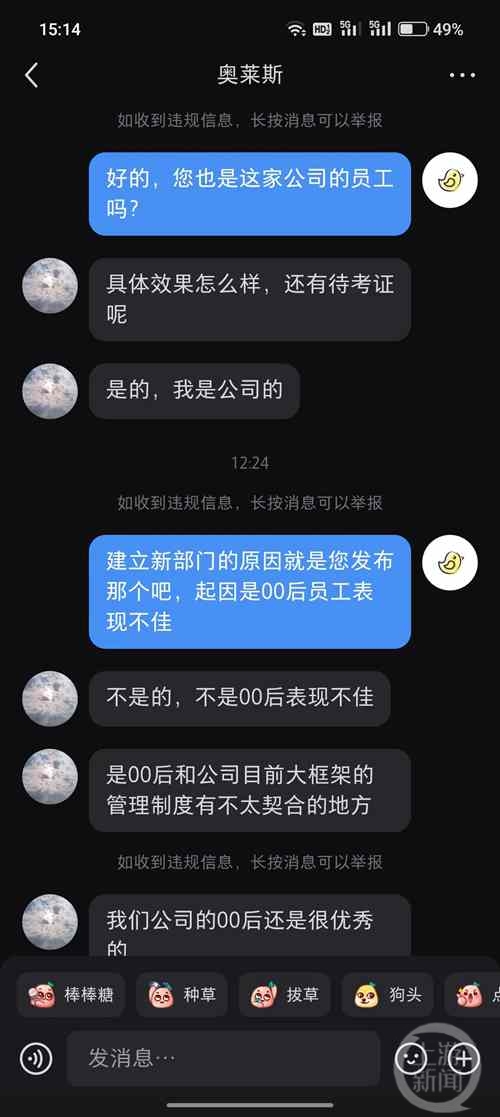 该网友表示,成立这样的部门并不是00后表现不佳,而是公司的00后和目前管理制度的大框架有不太契合的地方。之前提到的00后被辞退的情况,算是公司发现的一个问题。
