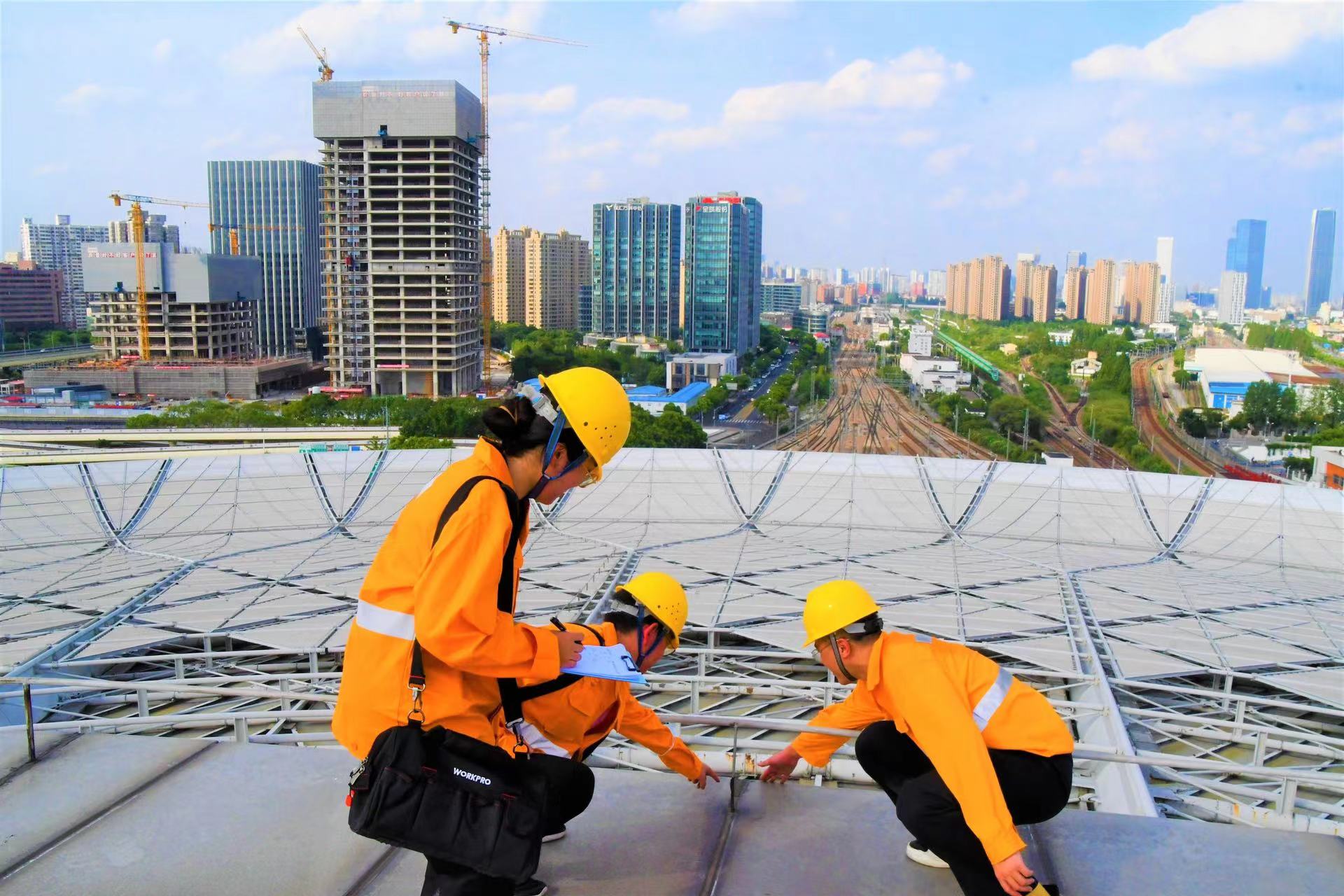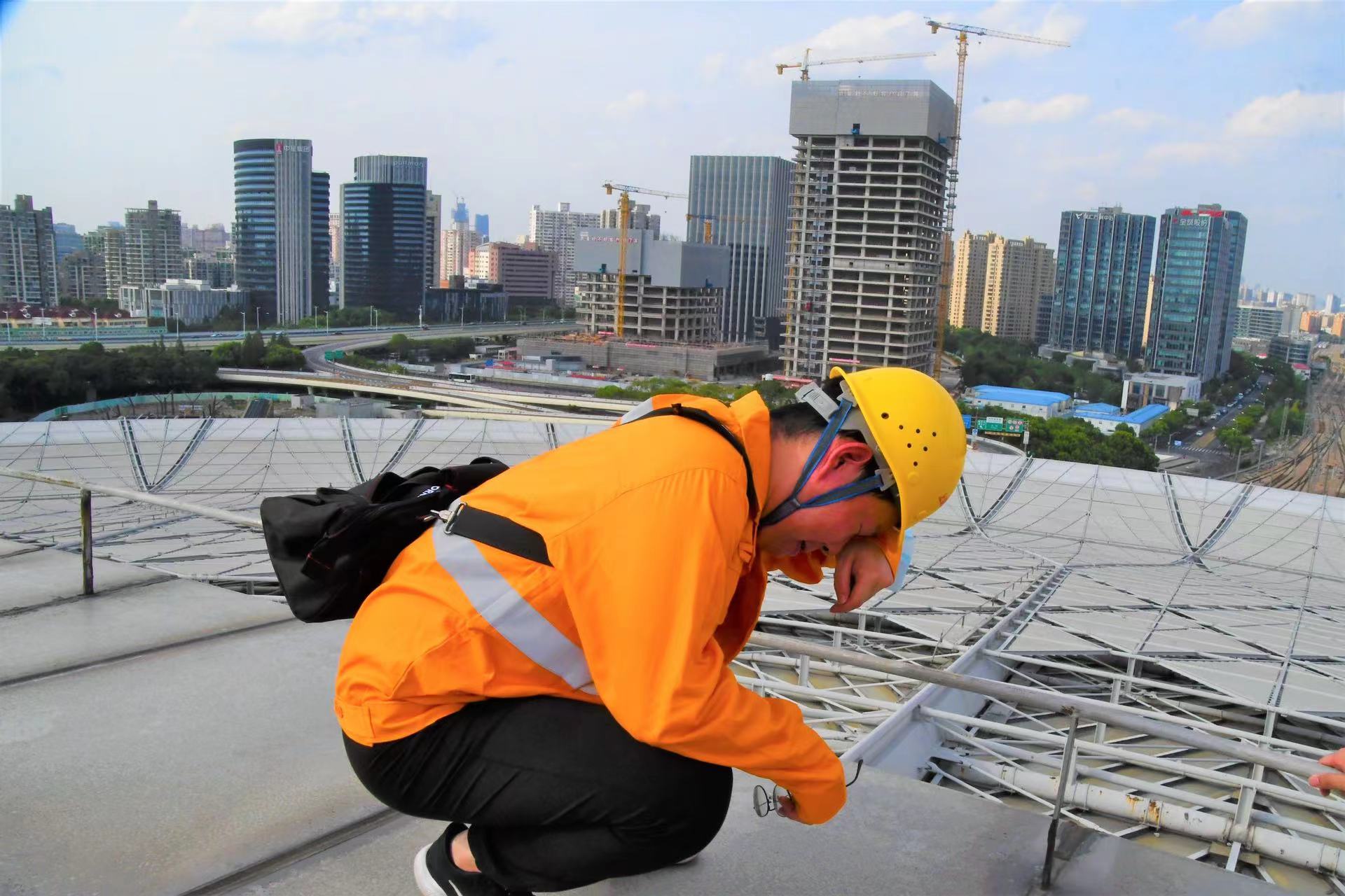 “除了检查钢结构的锈蚀,还要注意防水结构胶有没有开裂,天沟里有没有垃圾,螺丝是否有松动,一颗小螺栓都不能放过。”今年才26岁的郭恒泰告诉记者。