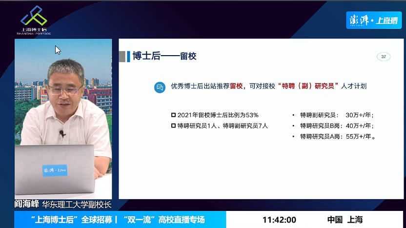 不仅如此,包括交大常务副校长丁奎岭、同济大学校长陈杰、中国工程院院士徐祖信等一众“大咖”也纷纷出镜,介绍学校总体状况以及博士后的发展前景。