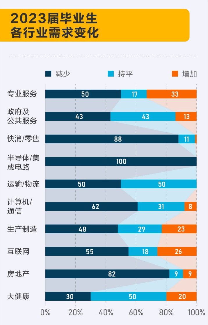相对于成熟人才的招聘,企业对于毕业生需求量总是难免存在“上一年多了、这一年少”的大小年波动。因2022年企业普遍面临困境,2023届毕业生“遇冷”没有悬念。
