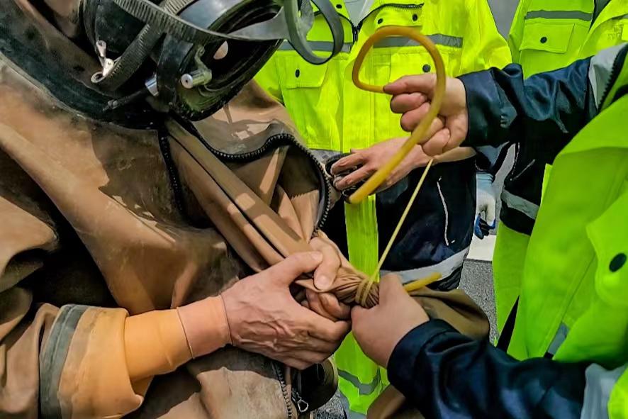 “蛙人”作业讲究的是团队合作。劳动报记者 颜筱依 摄影