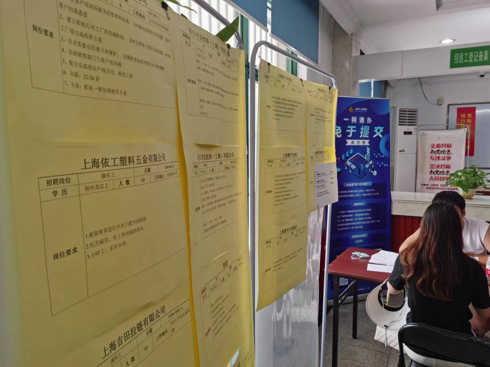 瑞丽路60号,一块“闵行区零工市场”的招牌显得特别显眼。7月26日,这里正在举办一场专场招聘会,9家企业带来了大量零工岗位,其中绝大多数对学历和工作经验都没有要求。