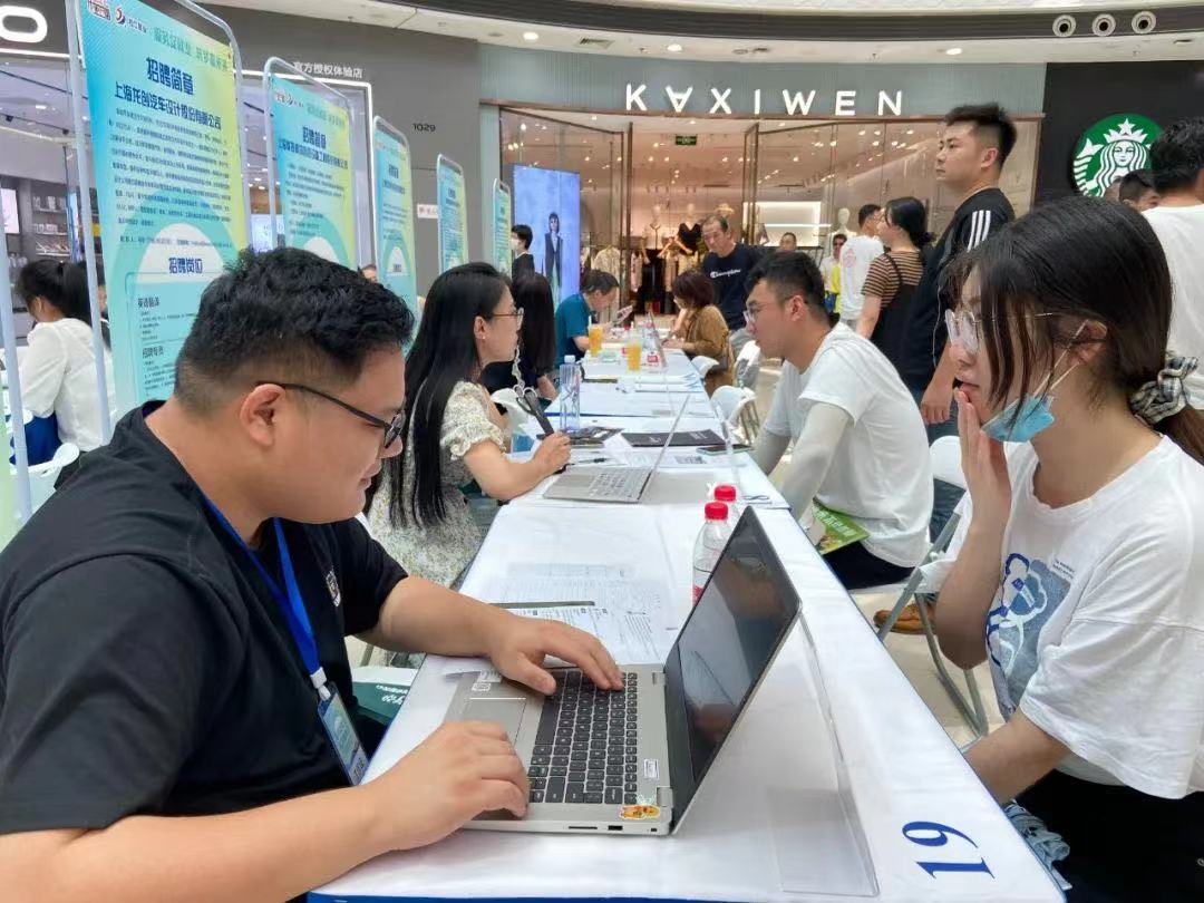 在松江万达广场举办的招聘会同样受到追捧。松江区内43家长三角G60科创走廊重点企业、就业见习基地、专精特新企业提供180多个岗位,共计招聘500余人。