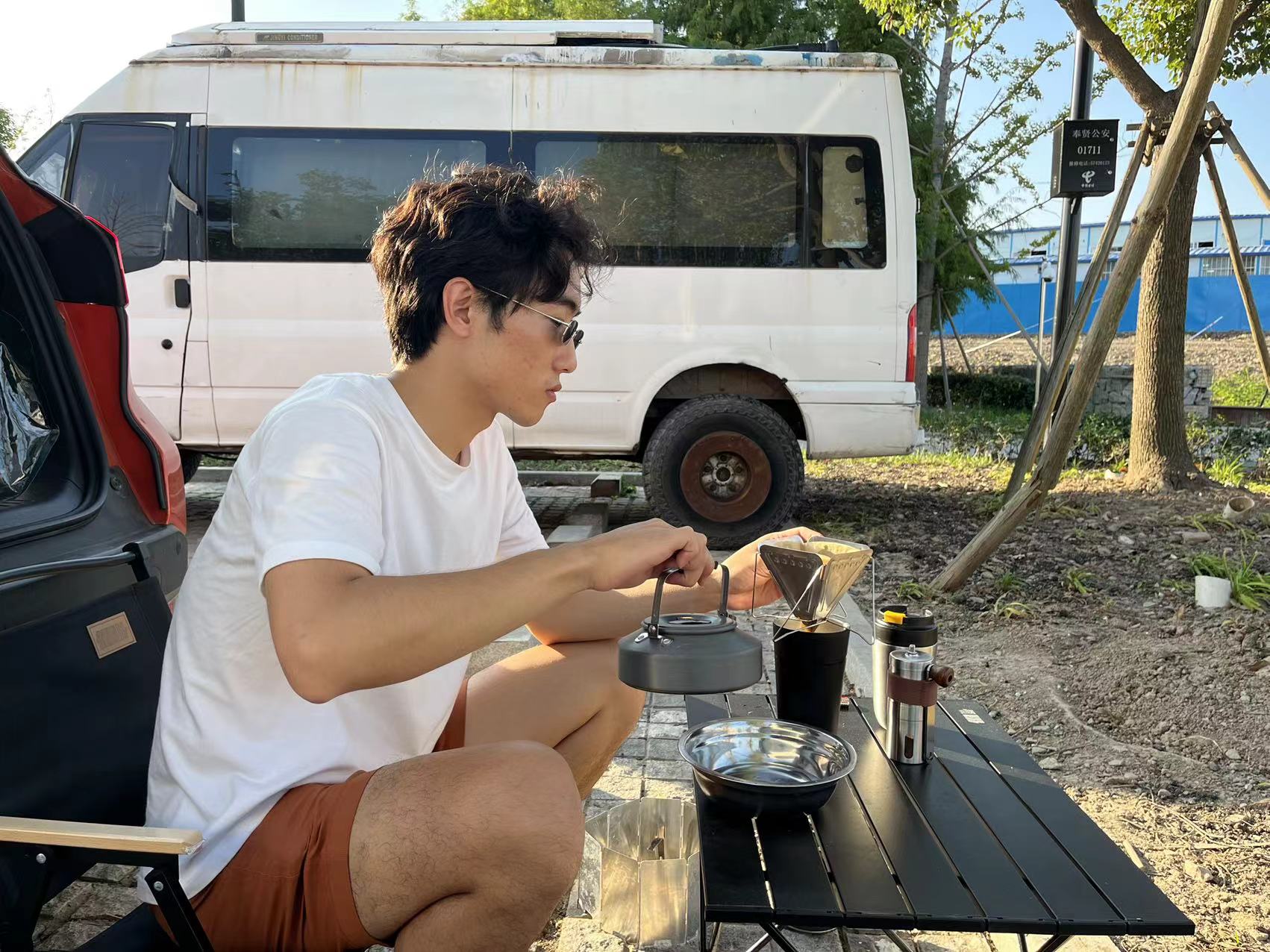 “您带杯子了吗?”扎克杨从后备箱里搬出了一箱子装备,点火、烧水、手磨咖啡豆……一杯热乎乎的手冲递了过来,坐在露营椅上,伴随着风声、孩童奔跑呼叫声,扎克杨讲起了他的故事。
