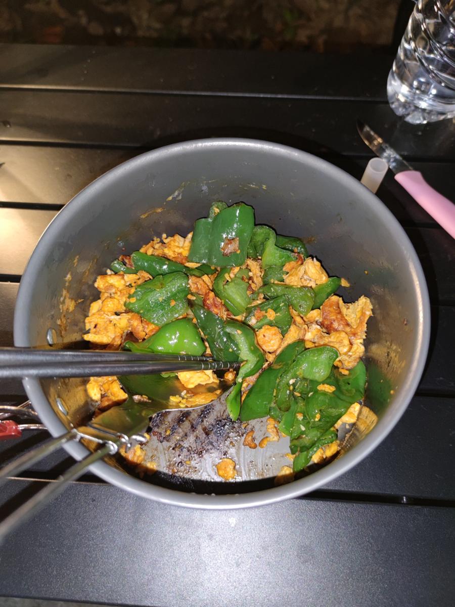 扎克杨在露营地做的菜。受访者提供