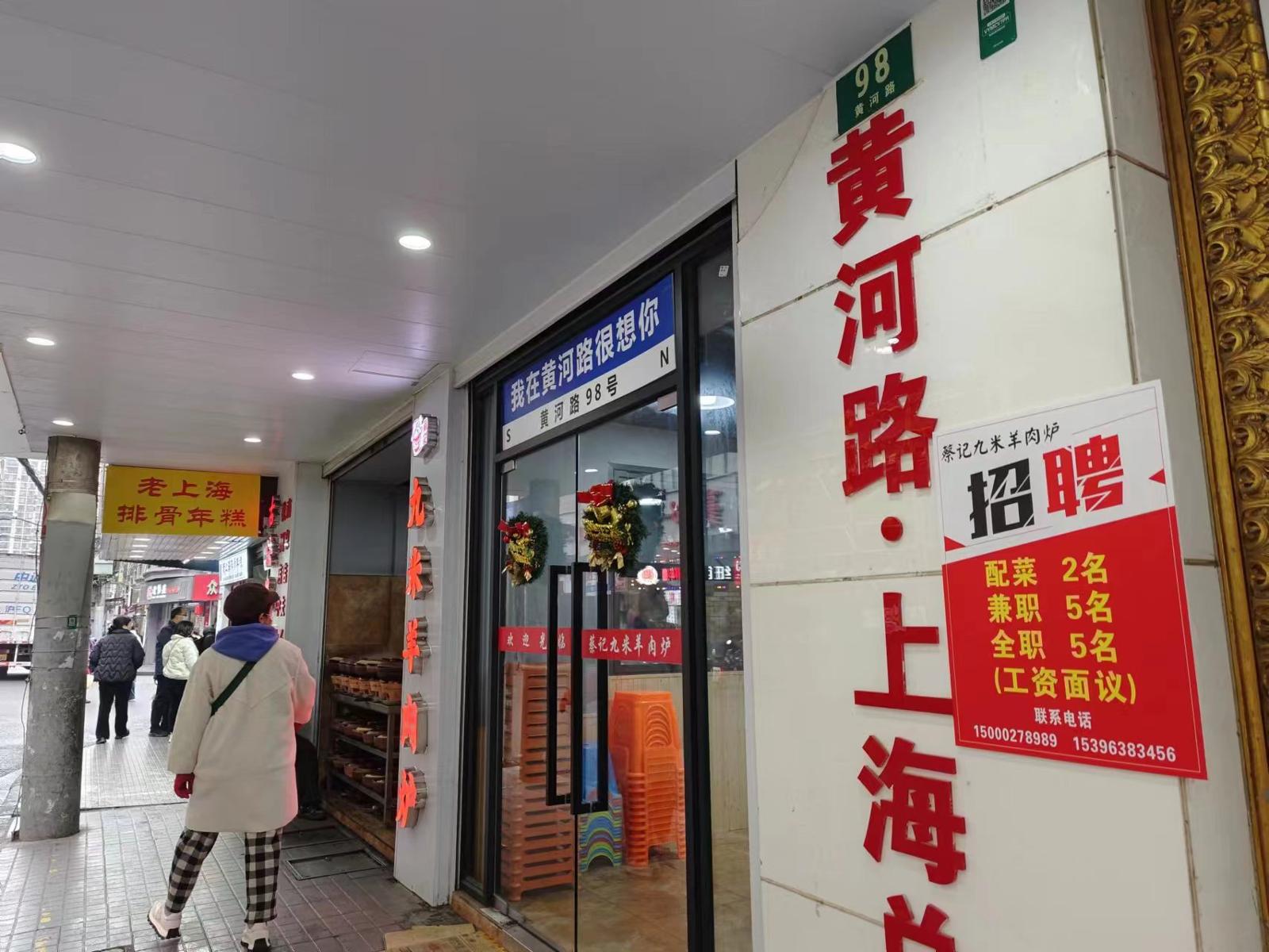 头图:年末存在一定用工缺口,黄河路上饭店在招聘。劳动报记者陆燕婷 摄影