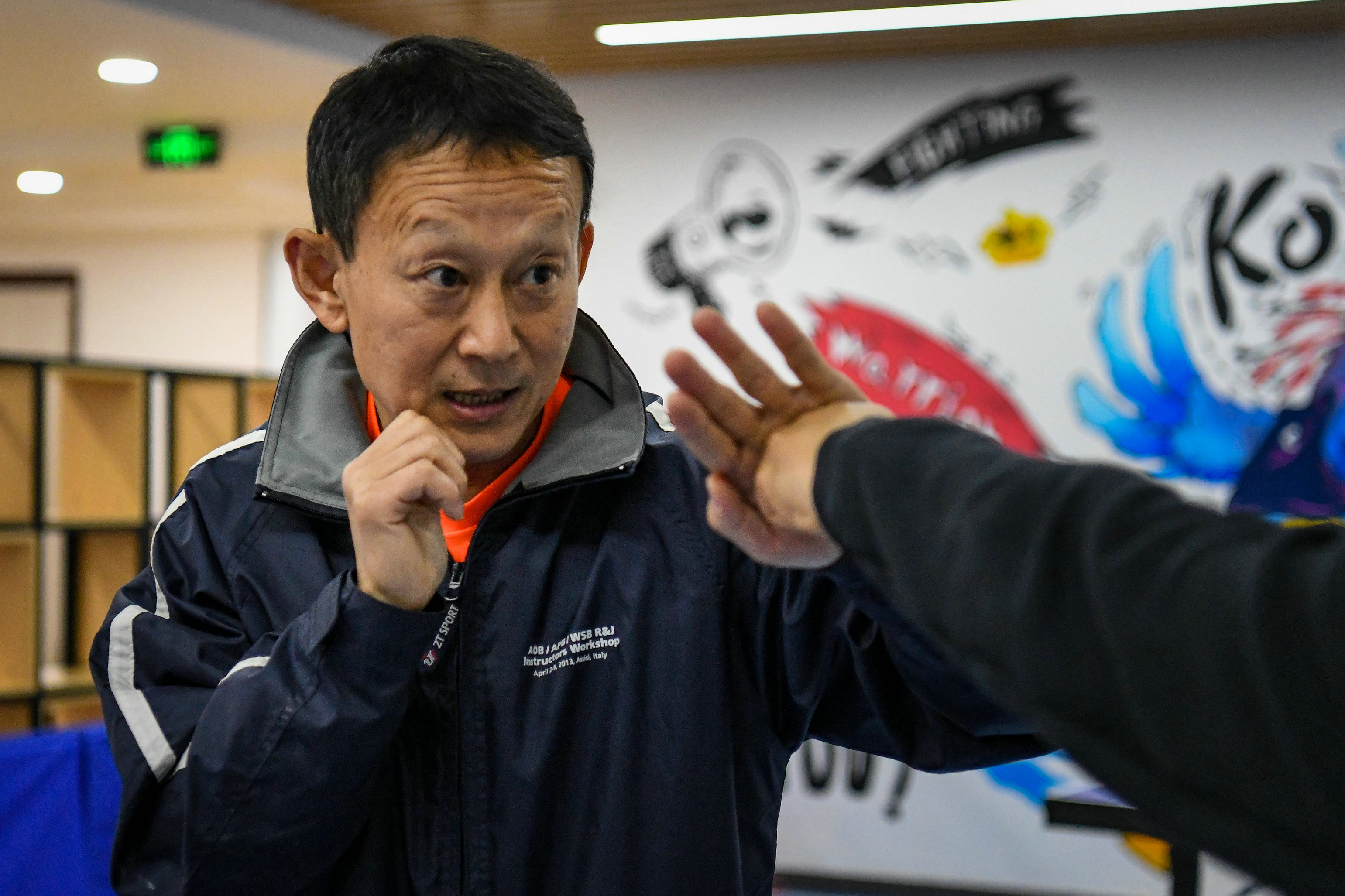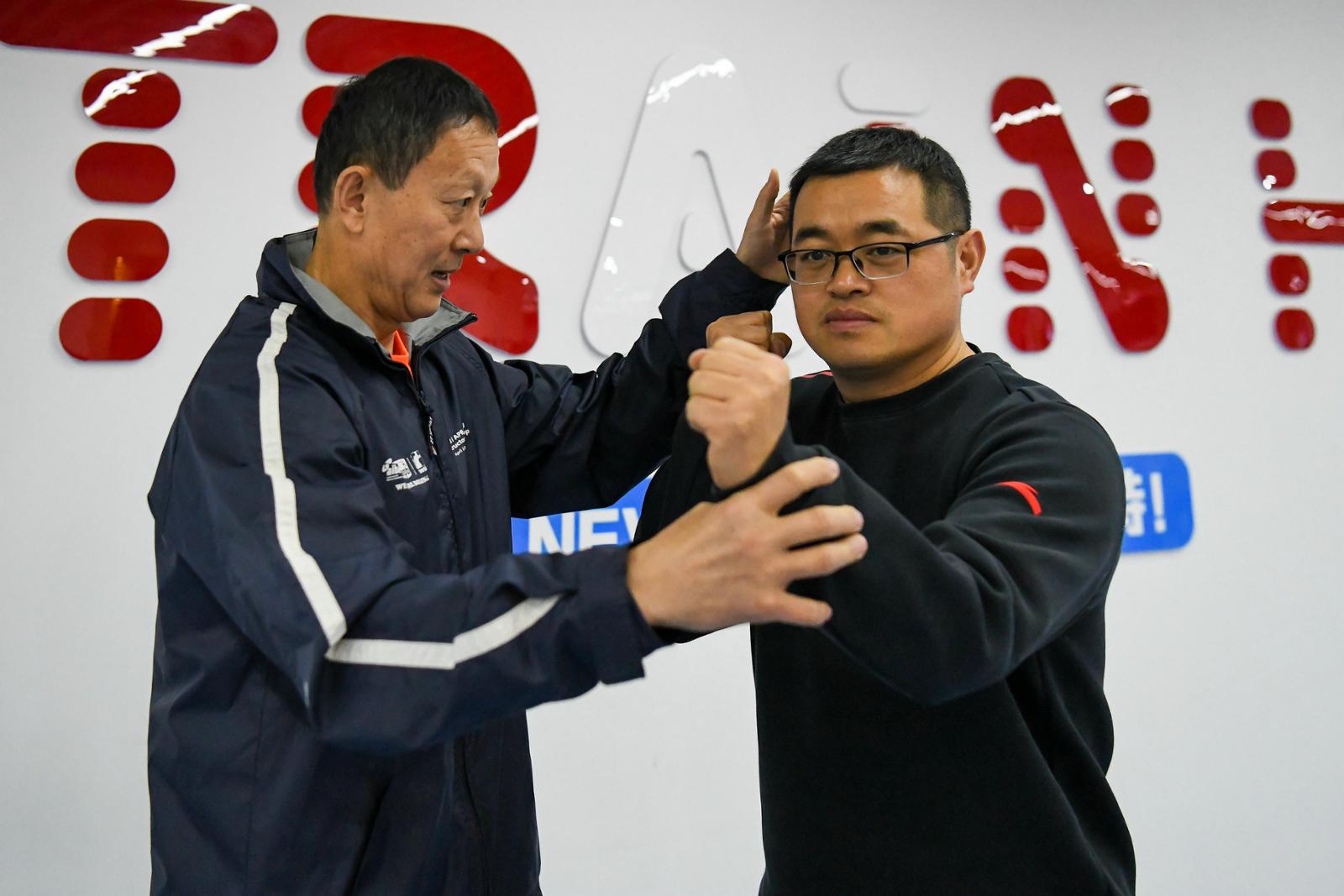 头图为王德新指导记者打拳。劳动报记者颜筱依 摄影