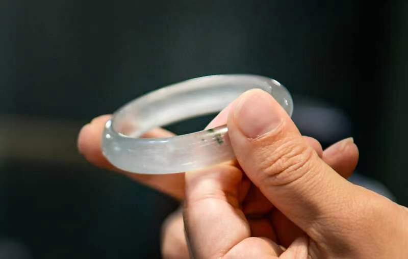 高冰玻璃种翡翠手镯。劳动报记者颜筱依 摄影