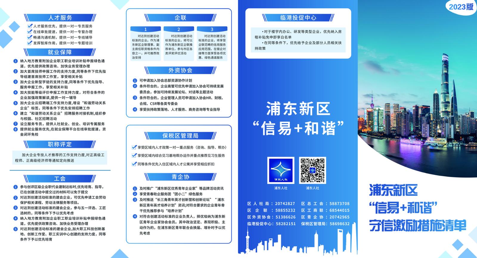 图为“信易+和谐”守信激励清单。浦东新区人社局提供
