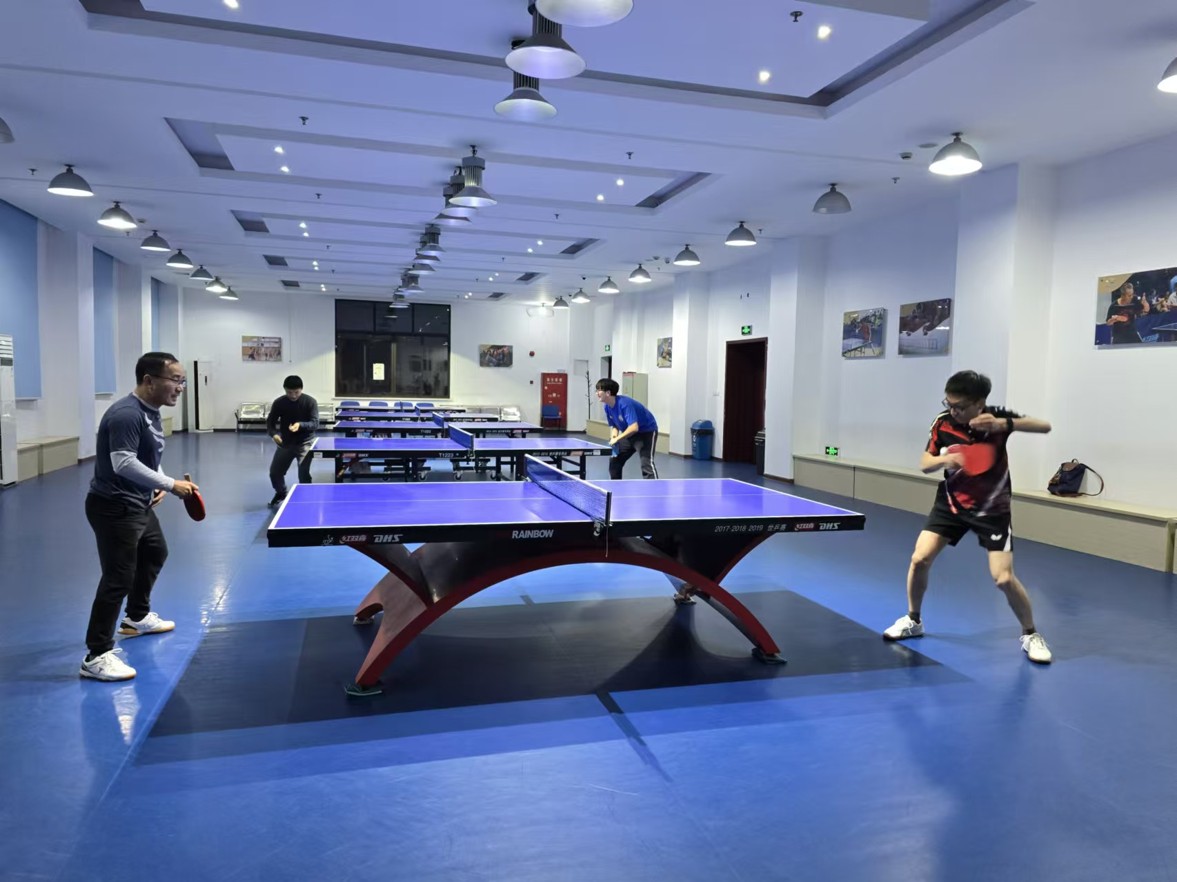 吃完晚饭,居民相约来到乒乓房打乒乓球。于玘珺 摄影