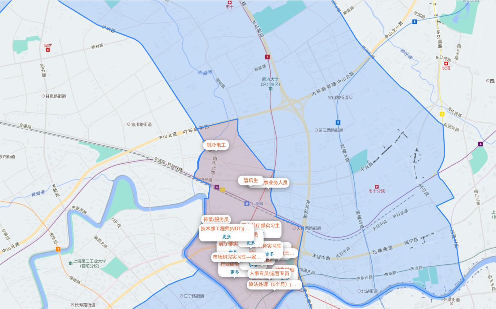 STEP2:按照所要查询的“区”-“街道”,就可以查看到其发布的各个职位
