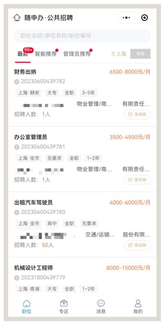 STEP2:点击下方“职位”栏目,进入职位搜索页面,按照自身求职意向筛选职位。
