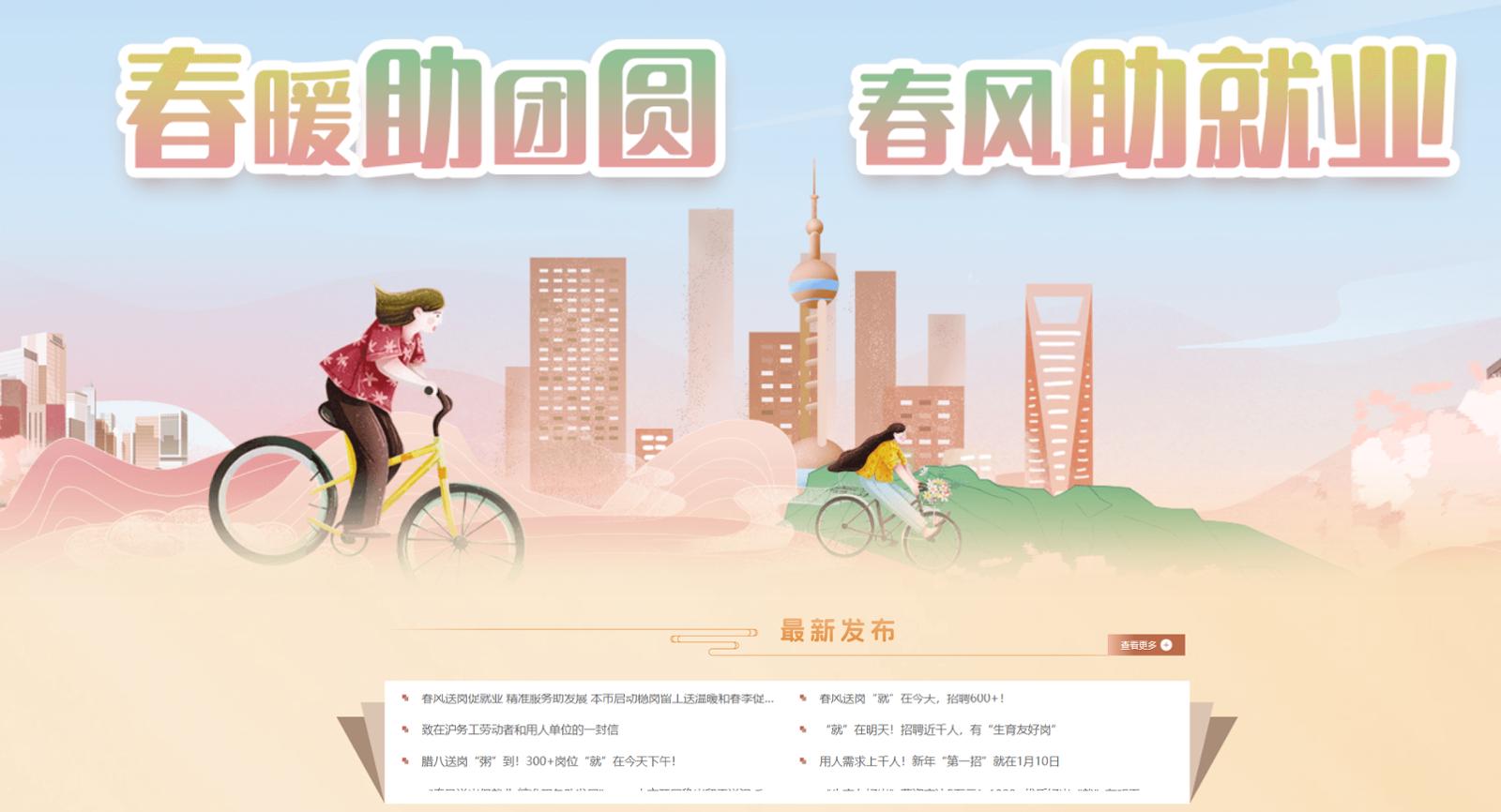 大家可以登陆上海市人力资源和社会保障局的官网,点击“春暖助团圆,春风助就业”专栏,实时了解春风行动的最新信息,同时还可在“春风送岗”的专栏内,及时获取到各种招聘信息。