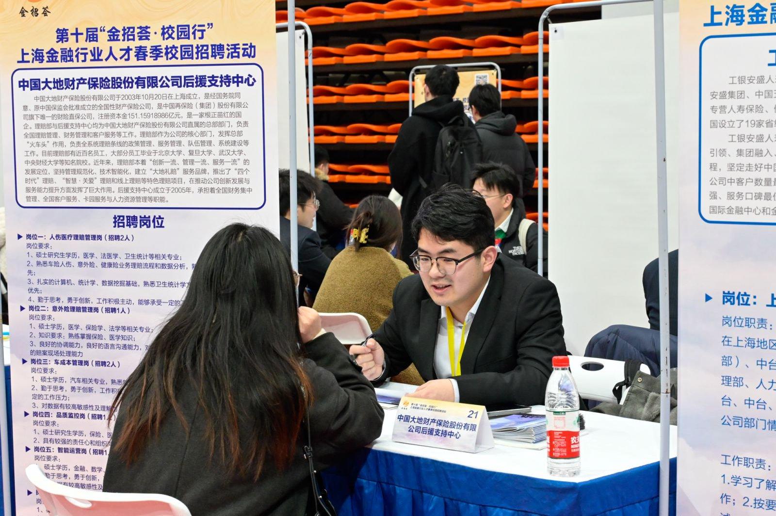 “我学金融的,想找证券公司的工作,在网上看到学校有招聘会,就赶紧过来了。”刚从英国伯明翰大学毕业的留学生小徐带着一沓厚厚的简历,特意来到上海财经大学,与招聘企业面对面交流。3月4日下午,第十届“金招荟·校园行”上海金融行业人才春季校园招聘会与2025届毕业生春季综合招聘会在上海财经大学举行,吸引了超过1200名校内外学子前来应聘。