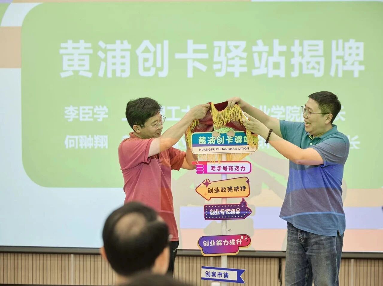 头图为黄浦创卡驿站揭牌现场,何翀翔为右一。受访对象供图