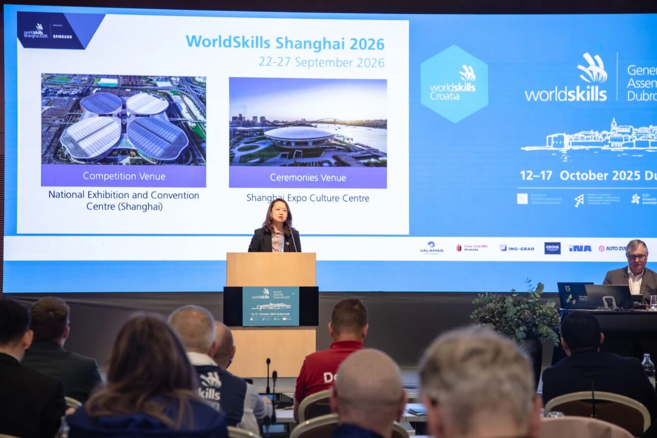 当地时间10月13日,2025年世界技能组织全体成员大会在克罗地亚拉开帷幕。开幕会议上,上海2026年第48届世界技能大赛事务执行局发布上海世赛套餐,并首次聘请11位世界技能大赛冠军联络小组代表担任“上海世赛全球技能梦想大使”,为2026年上海世赛筹办按下“加速键”。