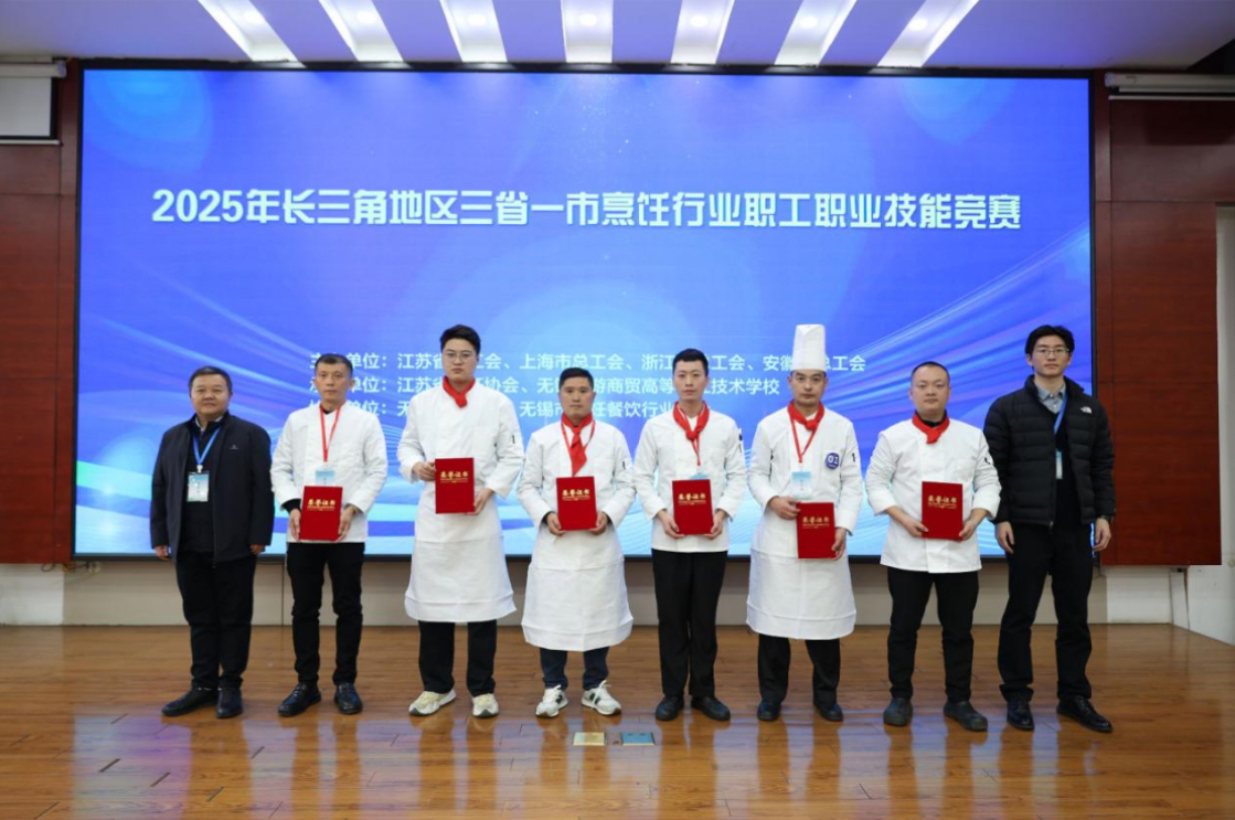 近日,由江苏、上海、浙江、安徽三省一市总工会联合主办的2025年长三角地区烹饪行业职工职业技能竞赛在无锡圆满落幕。经过激烈角逐,由上海总厨联盟精心组建并率领的上海代表队发挥出色,战绩辉煌,共斩获九项大奖,充分彰显了上海烹饪行业雄厚的人才储备与卓越的技能水平。