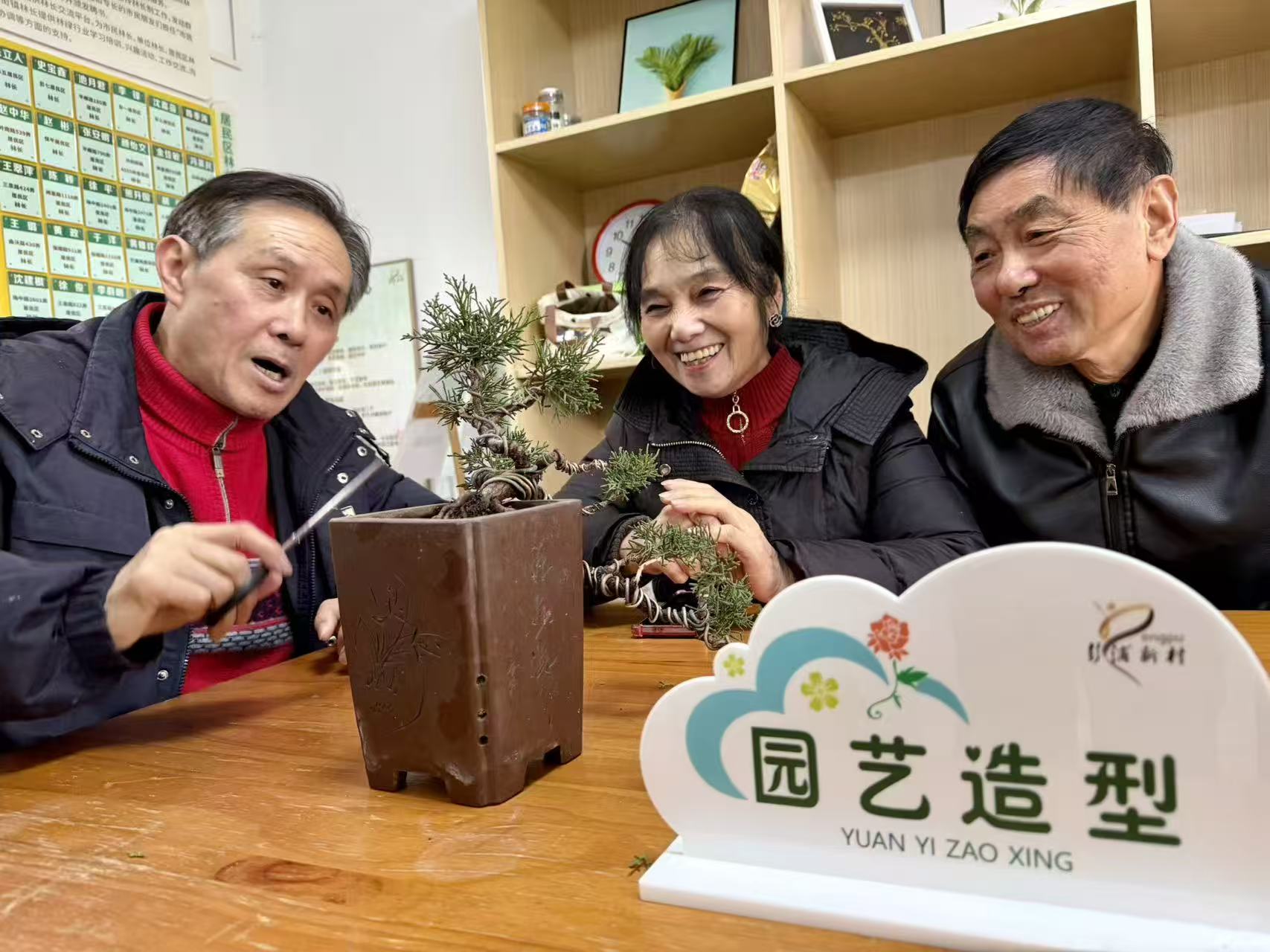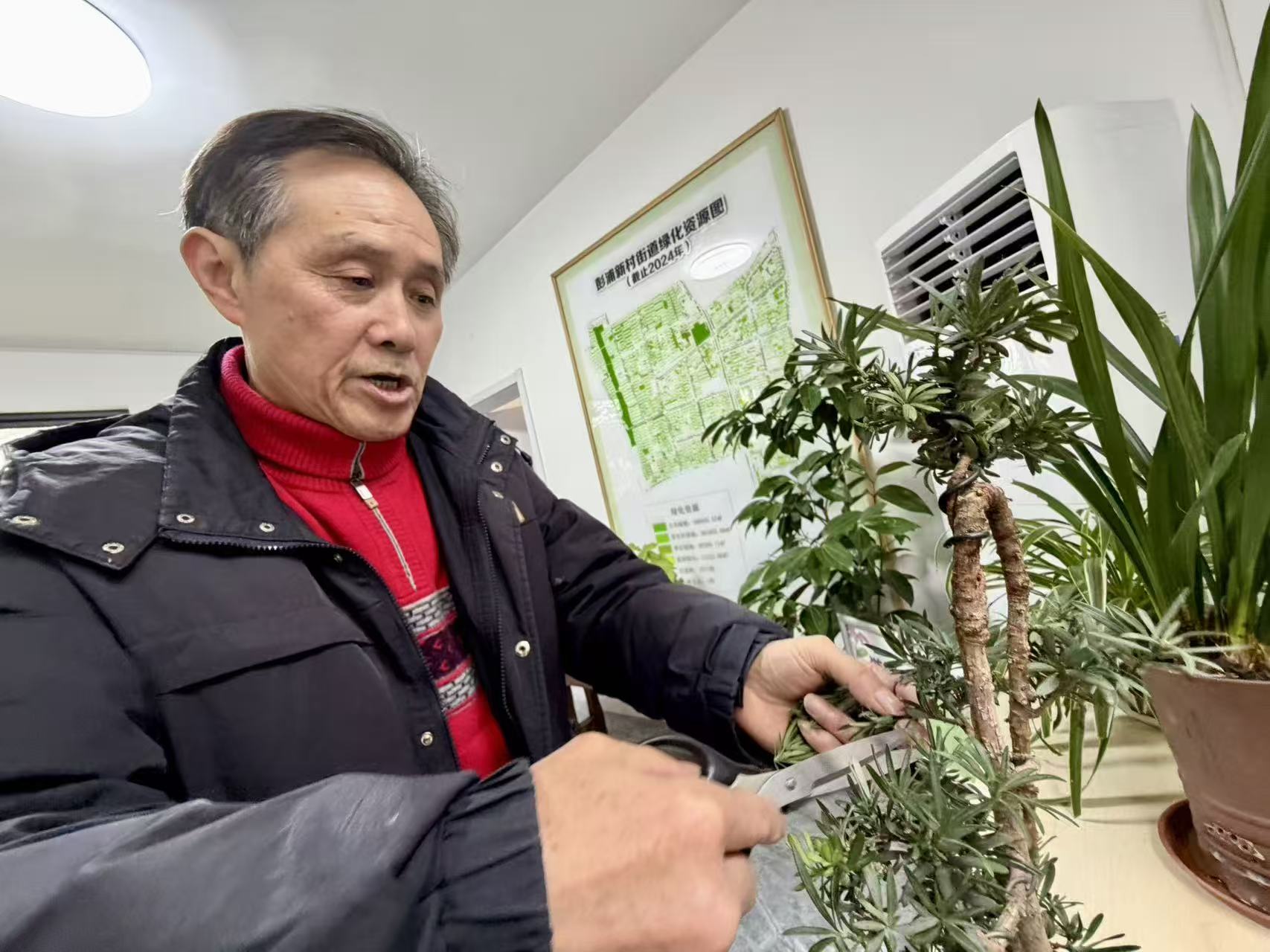 成为社区园艺师后,蒋海根的退休生活充实了不少:每周和其他社区园艺师轮流值守,在“社区园艺师问诊日”为居民的花花草草“把脉开方”;日常穿梭在各个小区巡查绿化长势,为死角补绿添彩;积极参与街道绿化养护与改造的方案讨论,用专业经验推动社区绿化更科学、更美观;他还曾组织社区园艺师去其他小区现场为居民修剪盆景、救治“生病”盆景,分享养护经验。