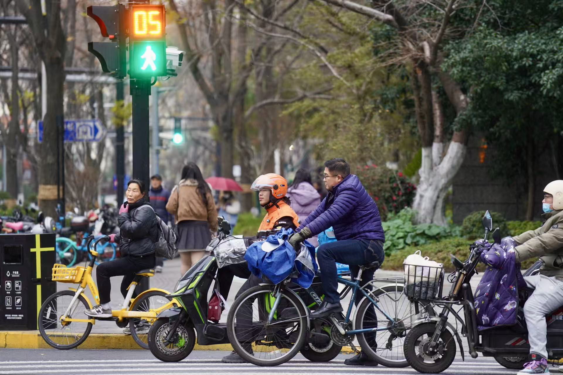 图为街上的外卖小哥。劳动报记者 贡俊祺摄影