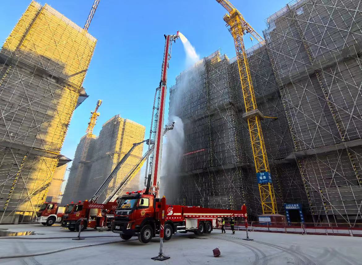 消防部门接警后,立即启动区域高层建筑火灾应急救援预案,科学调派属地及邻近消防站多部消防车疾驰赶赴现场。压缩空气泡沫消防车、举高喷射消防车、远程供水消防车等特种装备协同作战,迅速构建起立体攻坚作战体系。