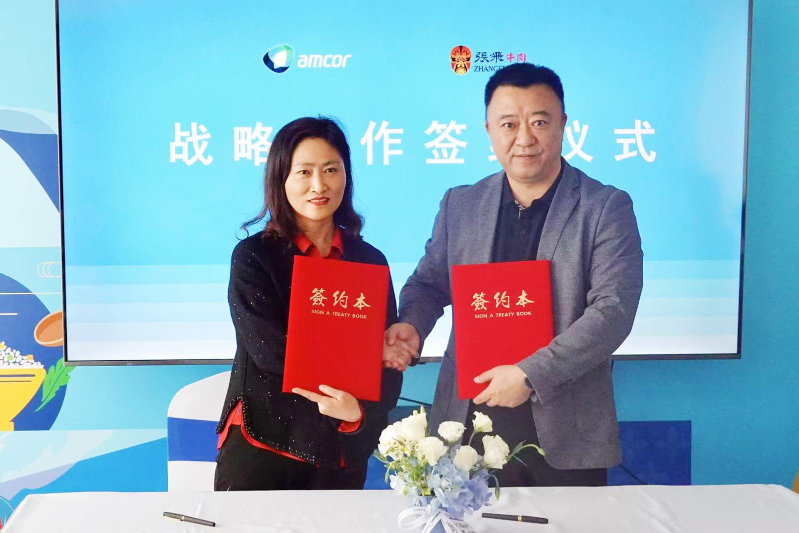 安姆科与张飞牛肉签署战略合作协议。劳动报记者贡俊祺 摄影