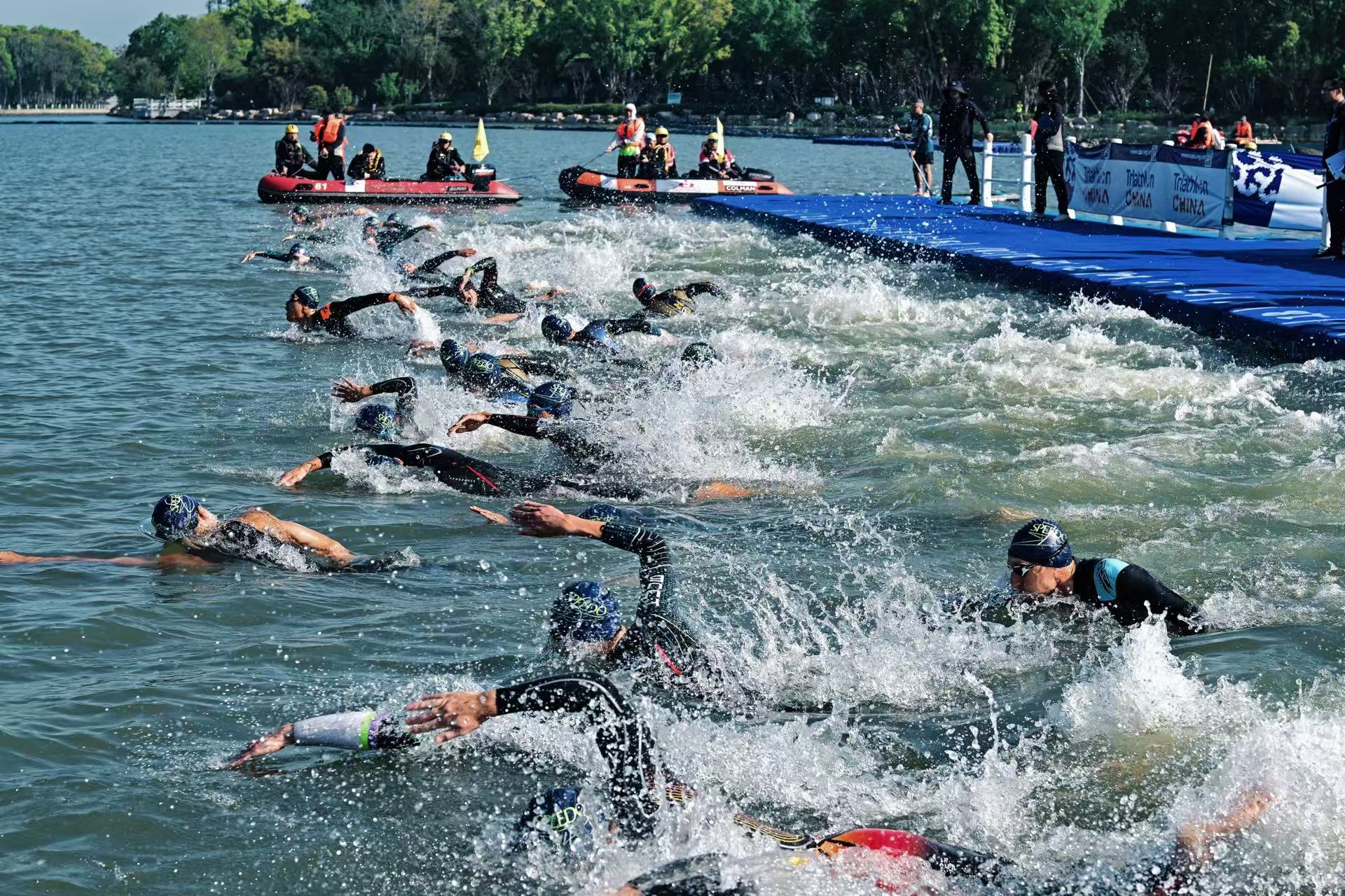 头图为2026长三角国际铁人三项赛游泳项目比赛现场。主办方供图
