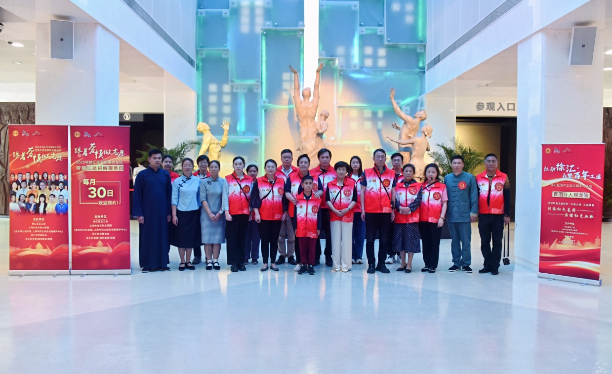 2025年5月30日,五卅运动一百周年。“红动徐汇・礼赞百年工运”百团万人观龙陵活动接待了劳模讲解团队25批次、近千名参观者,人数再创新高。当天中午,徐汇劳模志愿讲解团的志愿者们来到五卅惨案纪念碑前,共同向先烈们敬献鲜花,表达缅怀与敬意。