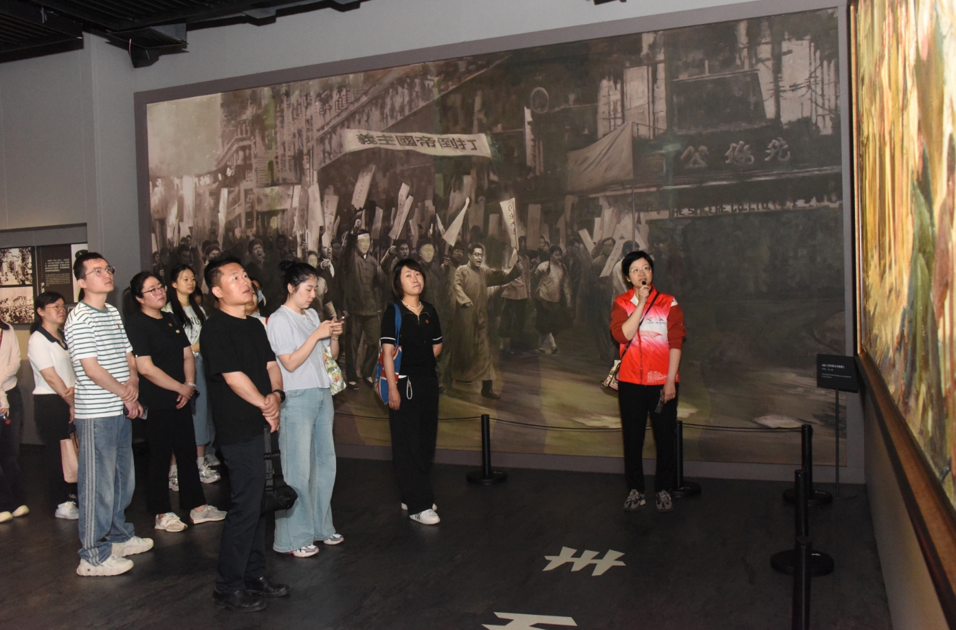 全国劳模王承、苏嵘,市劳模尚艳华、余美香、冯知洋、周晴、李雷惊、符欣怡,市五一奖章获得者万莉娜、兰凡,区劳模陈俊峭、董梁,和工会、学生志愿者们对工运纪念版讲解词的驾驭愈发游刃有余。这个特殊的日子里,已70岁的市劳模尚艳华在她所讲解的展厅,以更加饱满的情绪讲述着顾正红、瞿秋白、刘华等工运先烈的事迹,为观众呈现了五卅运动的诸多历史细节;“00后”符欣怡是新一届当选的上海市劳模,她反复研读历史材料等,更为熟练、更富深情的讲述着百年前那些同龄人可歌可泣的故事……为确保千人参观团的沉浸式体验,有了先期的讲解经验,大家及时掌握每个批次的衔接时间,根据不同讲解对象,调整讲解风格,这些细微处的执着和随机应变,正是“敬业奉献、精益求精”的劳模、工匠精神的生动写照。