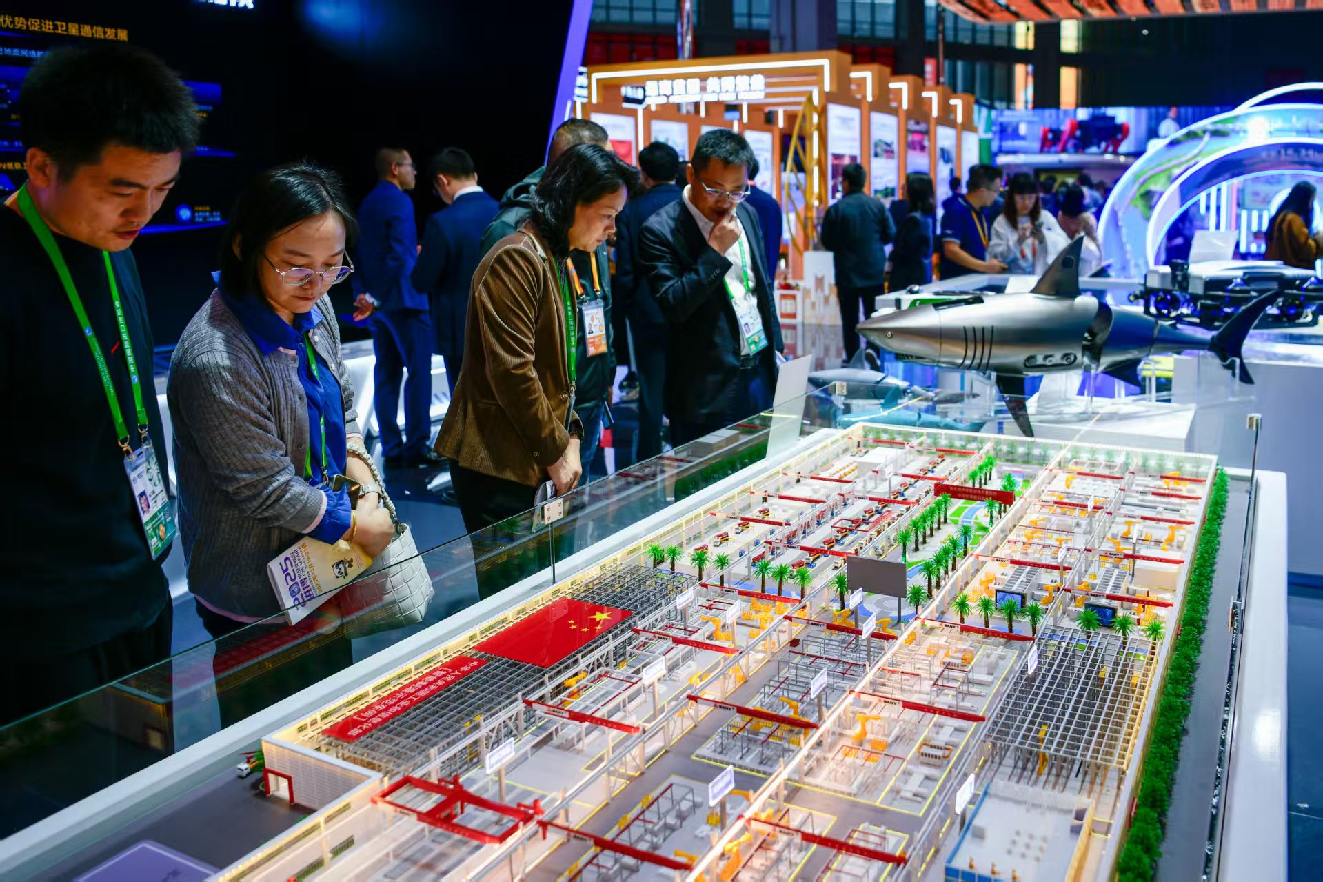 此外,中国馆内还有自动驾驶小巴、脑机接口平台、纳米孔基因测序仪、可以潜入海底100米进行智能作业的仿生大鲨鱼等前沿科技展项,涵盖了航空航天、人工智能、生物技术、新能源、新材料等重点领域,全面展示着推进中国式现代化建设的最新成果。