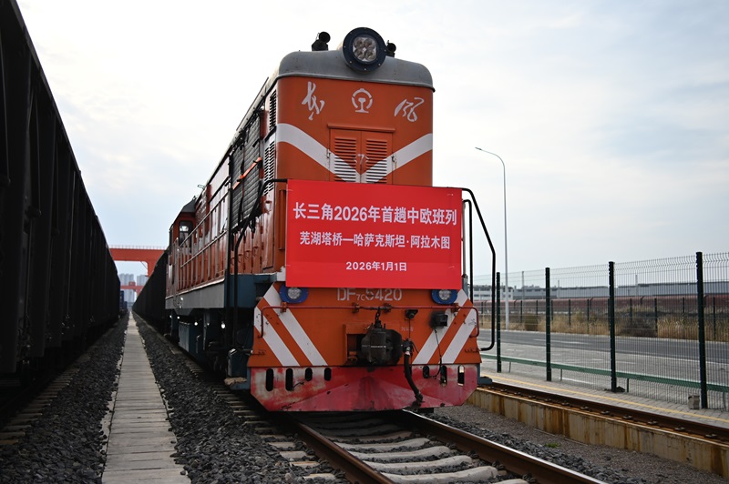 1月1日凌晨4时许,一趟载有108个标箱汽车零配件等出口货物的中欧(亚)班列从芜湖塔桥多式联运基地开出,班列将经霍尔果斯口岸出境,前往哈萨克斯坦阿拉木图。记者从铁路部门了解到,这是2026年长三角地区开出的首趟中欧(亚)班列。