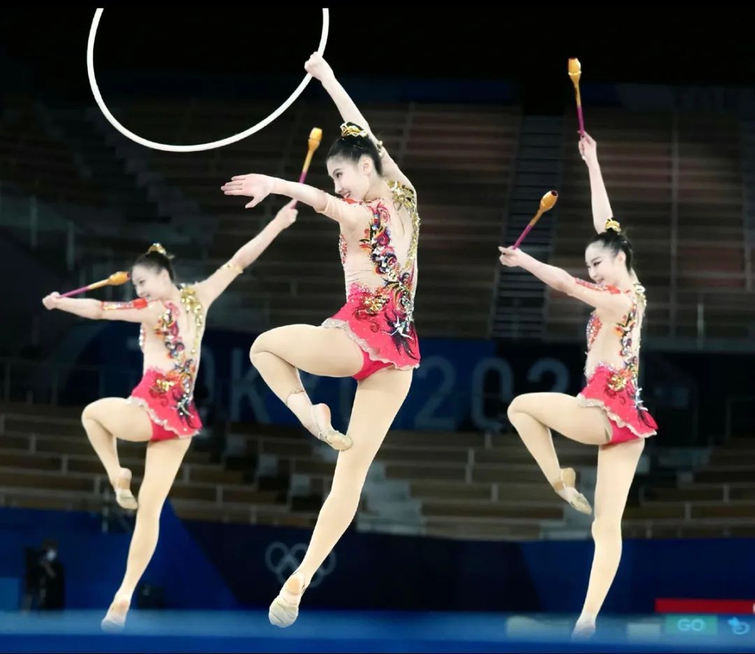值得一提的是,这支艺术体操队的队长郭崎琪来自上海。因为拥有不错的舞蹈基础,舞台上表现得更为灵动,郭崎琪6岁的时候被艺术体操教练选中,9岁进入到上海市队。很长一段时间里,郭崎琪都是主攻个人项目,2018年年底,国家队到地方队选人,刚练集体项目不久的郭崎琪,就这样被选到了国家队。上一届东京奥运会,郭崎琪就是中国队的主力,她也会继续努力,争取在巴黎奥运会上,与队友们一起,再次释放优雅,如花绽放。