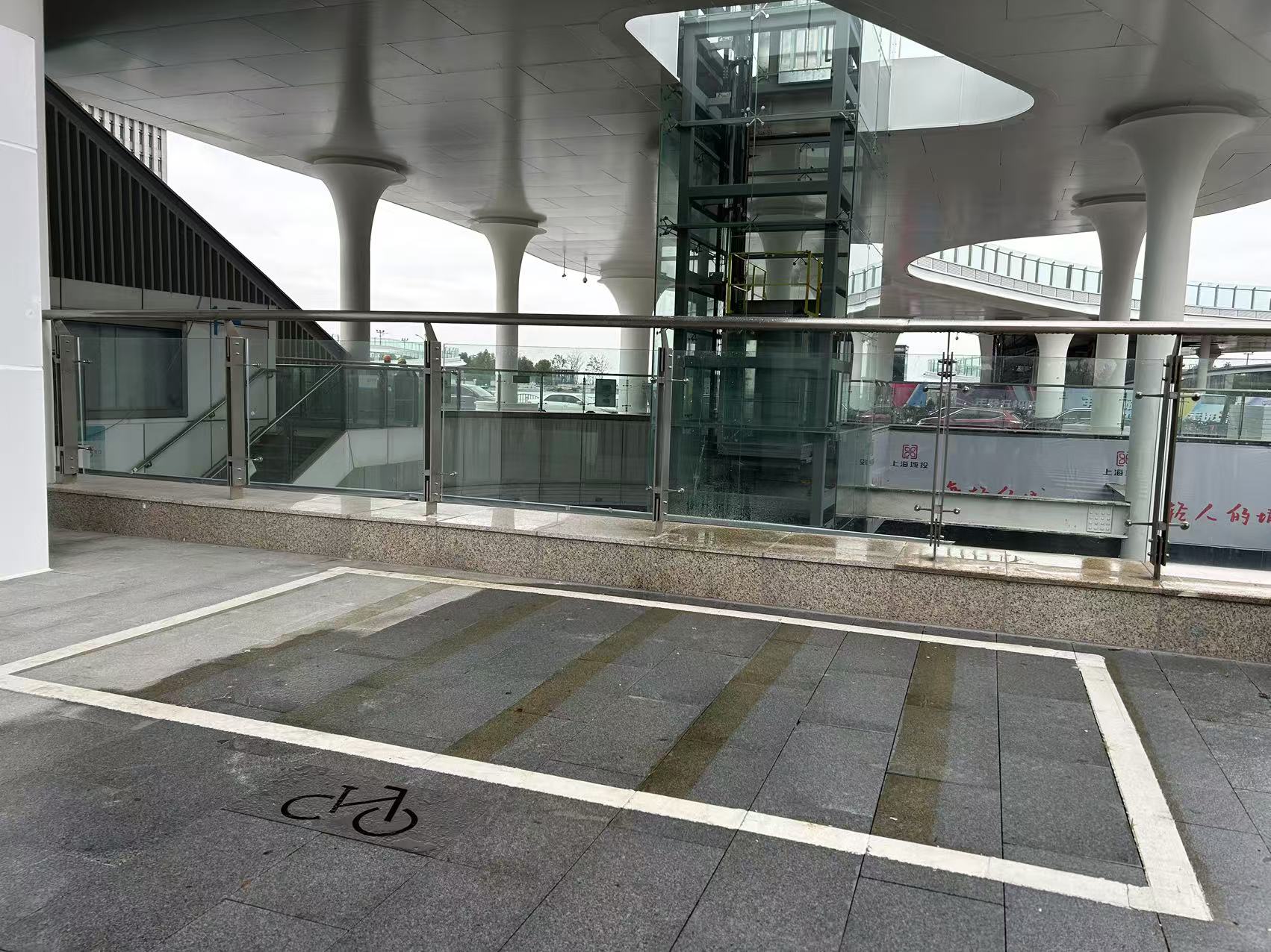走出16号线滴水湖地铁站,记者发现,原先的贝壳形车站顶盖“不见了”,取而代之的是一个造型非常漂亮的二层的空中平台,样子有点像上海世博会时的世博轴。