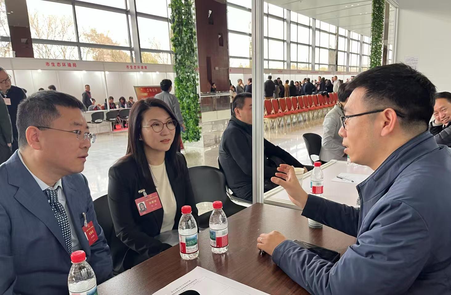 全国人大代表樊芸与委办局工作人员交流。劳动报记者 贡俊祺 摄影