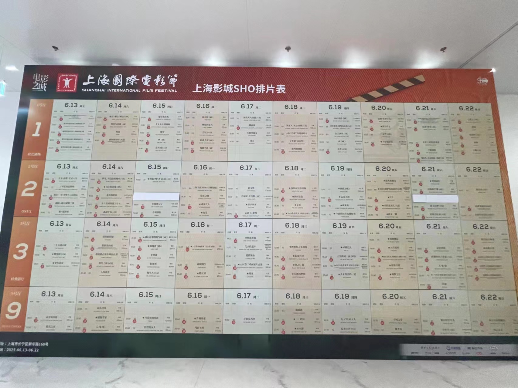 主会场上海影城的排片墙上,绝大多数场次已贴上“满”字。劳动报记者马亚会 摄影
