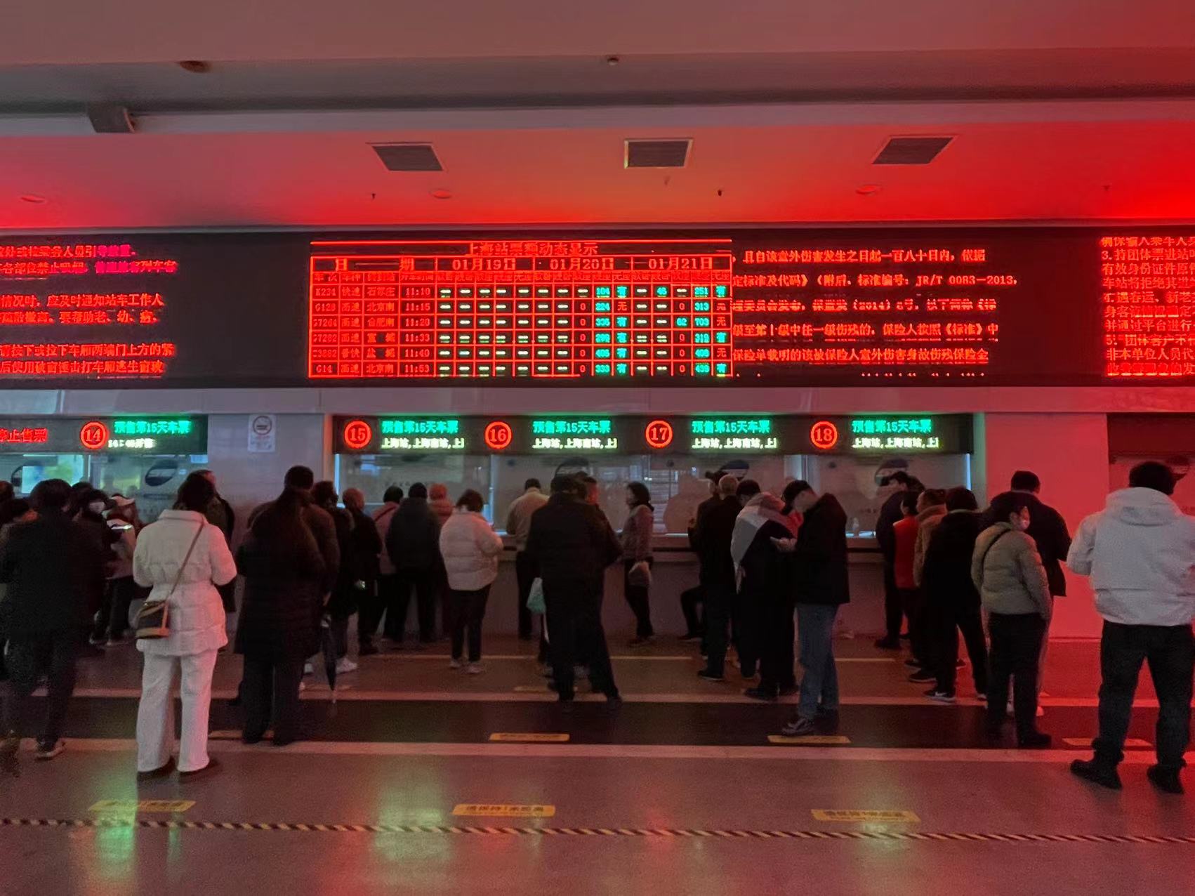 2026年春运从2月2日正式启幕,为期40天。下午13时30分许,记者来到了位于铁路上海站南广场的联合售票大厅,按照今年火车票开售时间,下午14点45分,上海站、上海南站、上海松江站等三大主力车站的火车票开窗售票。