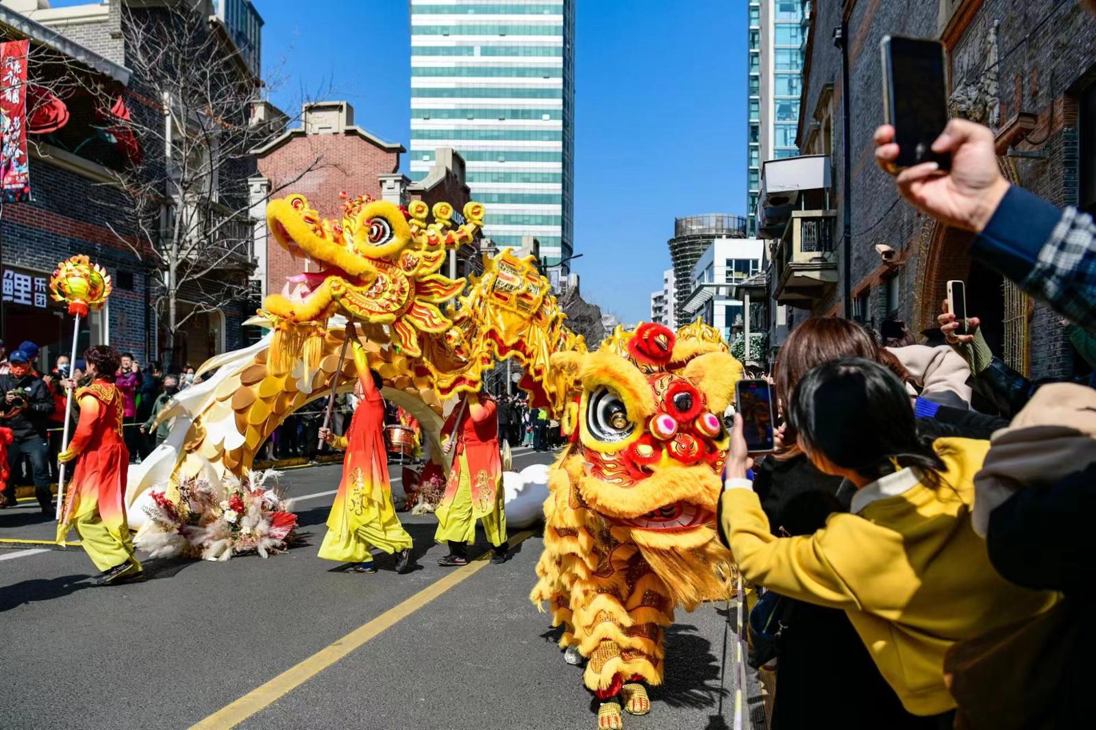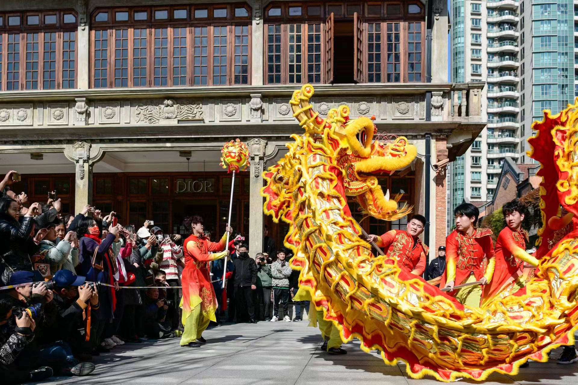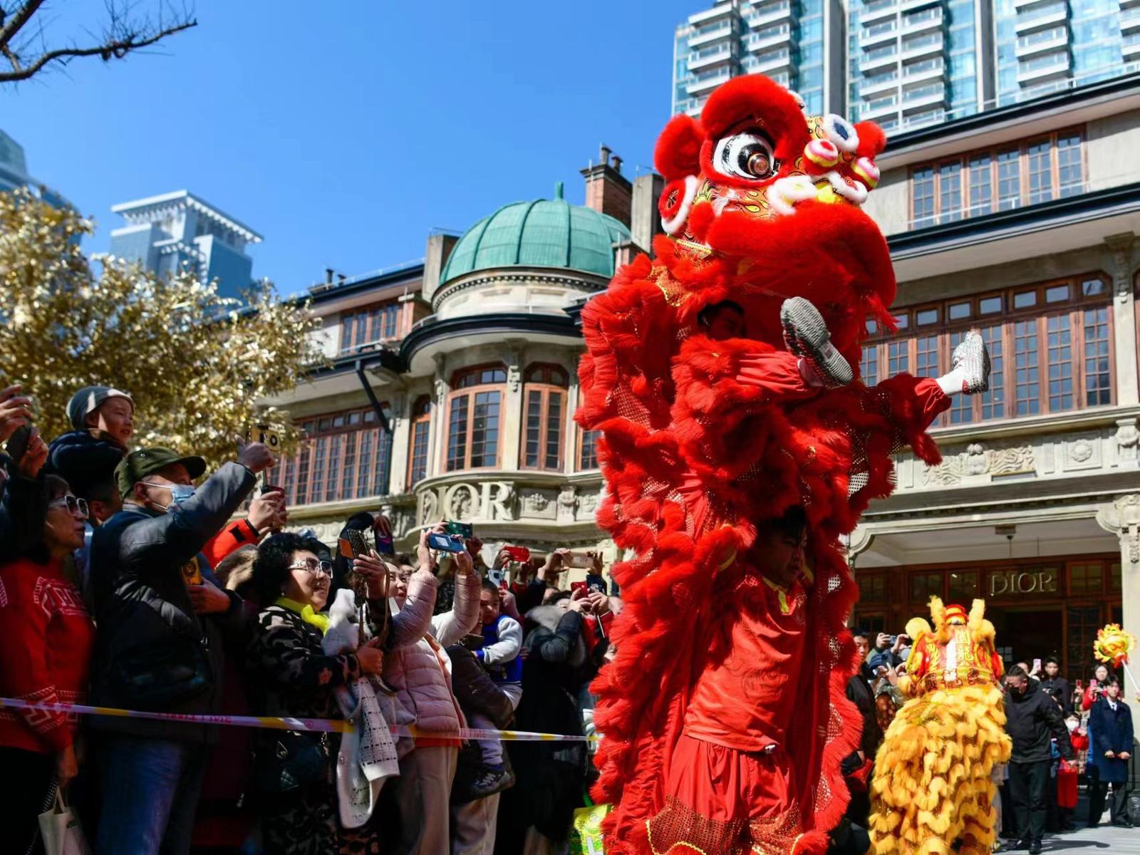 申城主要商圈和文旅景点龙腾狮舞,呈现出一派喜庆祥和的气氛和浓郁的民俗文化风情。