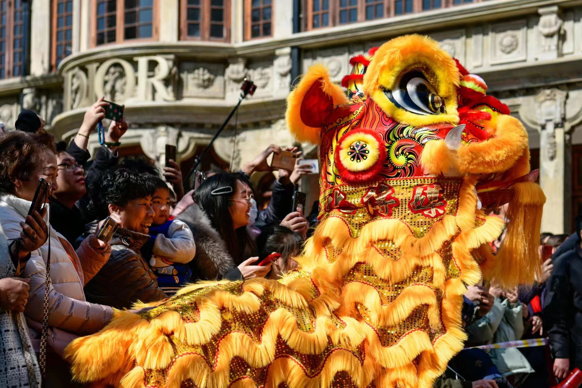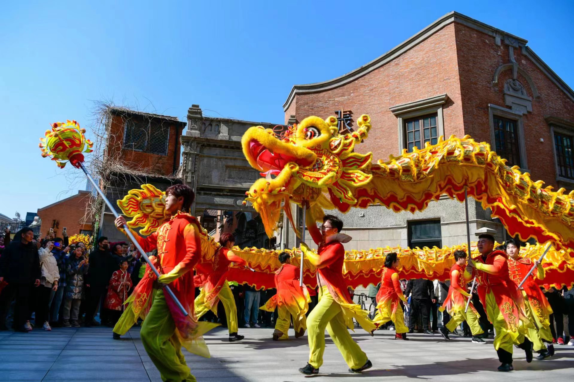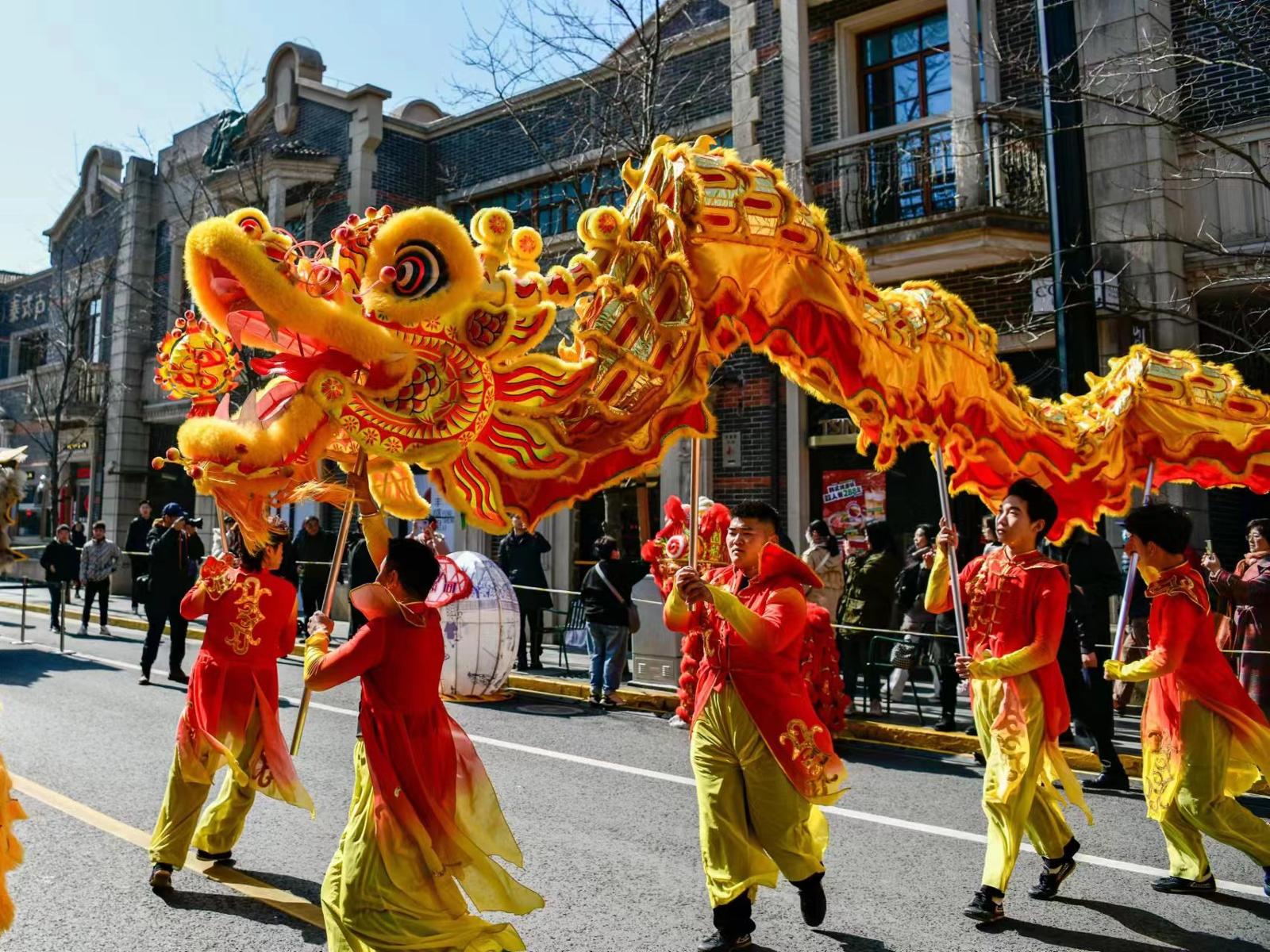 申城主要商圈和文旅景点龙腾狮舞,呈现出一派喜庆祥和的气氛和浓郁的民俗文化风情。
