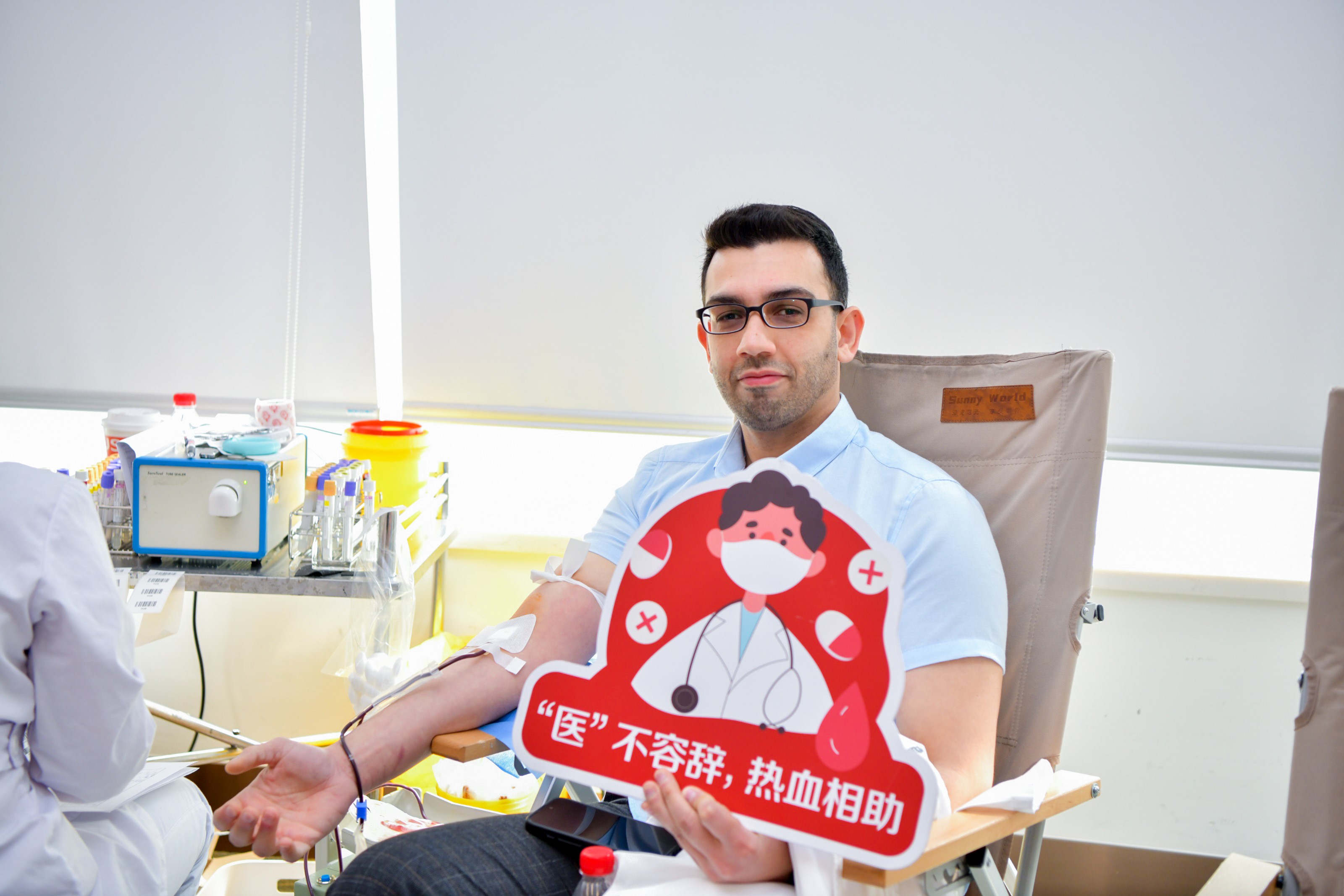 此次公益活动中,嘉会国际医院的医护人员也积极参与了献血,以回馈血液中心与社会各界的用血支持。来自埃及的儿科医生阿尔法特(Ahmed Arafat)已经在中国生活了10 多年,此次是他第3次参与献血。“输血治疗是救治的重要手段之一,除了可以应用于创伤、孕产或手术出血以外,还能造福于血液疾病等特殊患者。血红蛋白水平高的人参与献血还将有助于降低血液粘度。我希望每个人都能支持这项公益,用自己的血液点亮他人生命之光。”