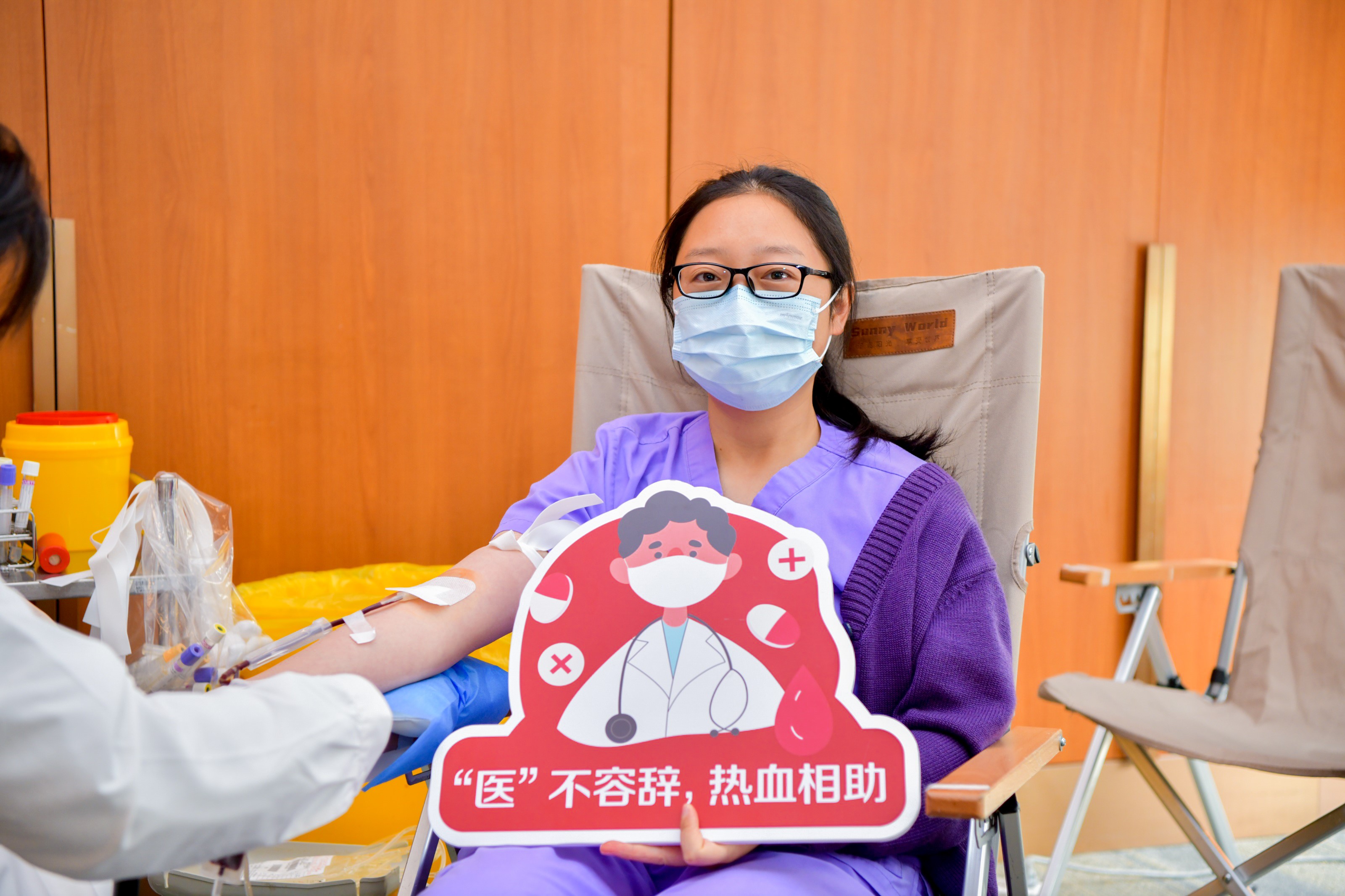 嘉会医疗外科护士张蕾参与献血。受访者供图