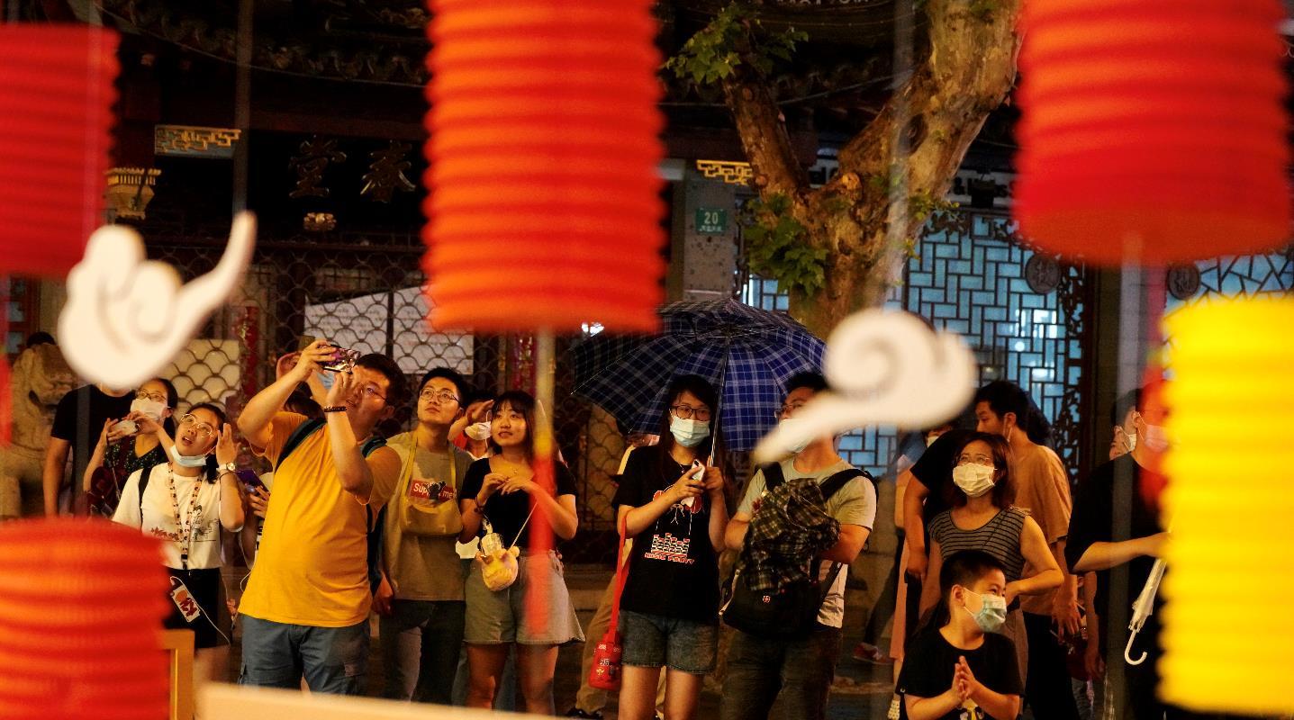 随着夜经济序幕的拉开,一场集灯光、演艺和夜间集市为一体的夜间消费“国潮老字号”游园会在豫园商城举办。