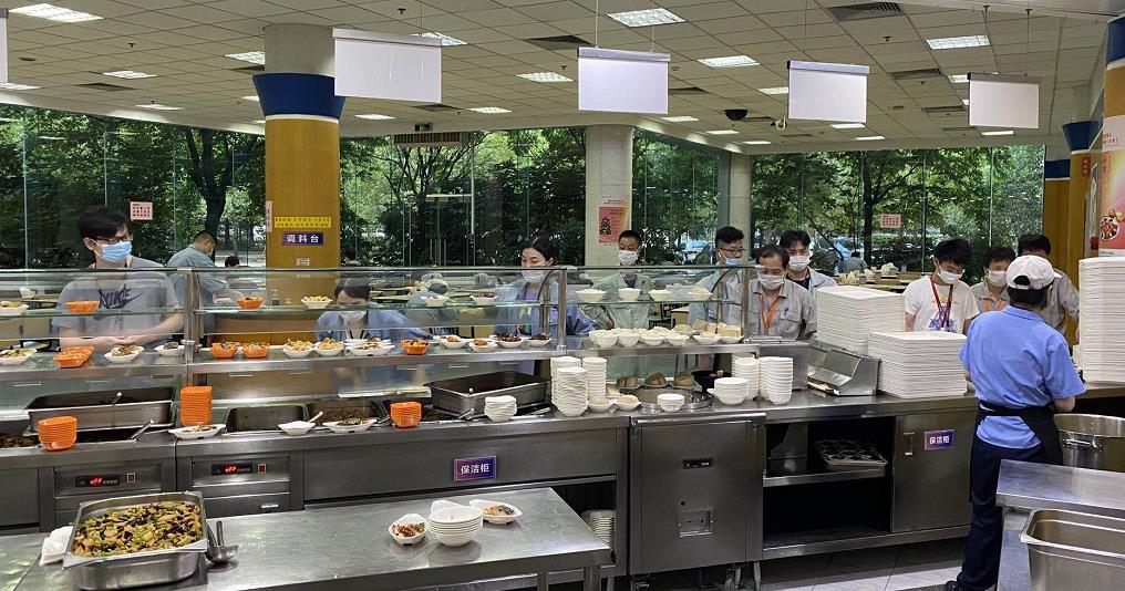 一家食堂除了供应具有浓郁上海风味的油爆虾、红烧大排外,早晚还供应锅贴、生煎、豆浆、粥等。夏令期间,这家食堂推出了各种花式浇头面,受到了职工的追捧。另一家食堂则以粤式菜点为主,夏季,为了增加职工食欲,增加了香肠木桶饭之类的煲仔饭供应。另两家食堂,一家以供应日料为主打,夏季鳗鱼饭、蛋包饭成为主流。另一家则以西餐当家,考虑到营养与健康兼顾的职工增多,西式轻食和沙拉在夏季供应的比例越占越大。