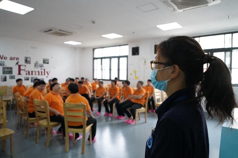 而在寝室区域,保洁人员正忙着进行定时消毒。副站长计琼介绍:“虽然现在上海重大突发公共卫生事件调整为三级响应,但我们的消毒防疫措施都是以最严格的标准来执行。”此刻,唯一留在女性宿舍区的是7月刚被送入二站的女孩小艾。她还在适应二站生活,由专人看护。手里拿着童书的她,正怯生生地看着工作人员的一举一动。