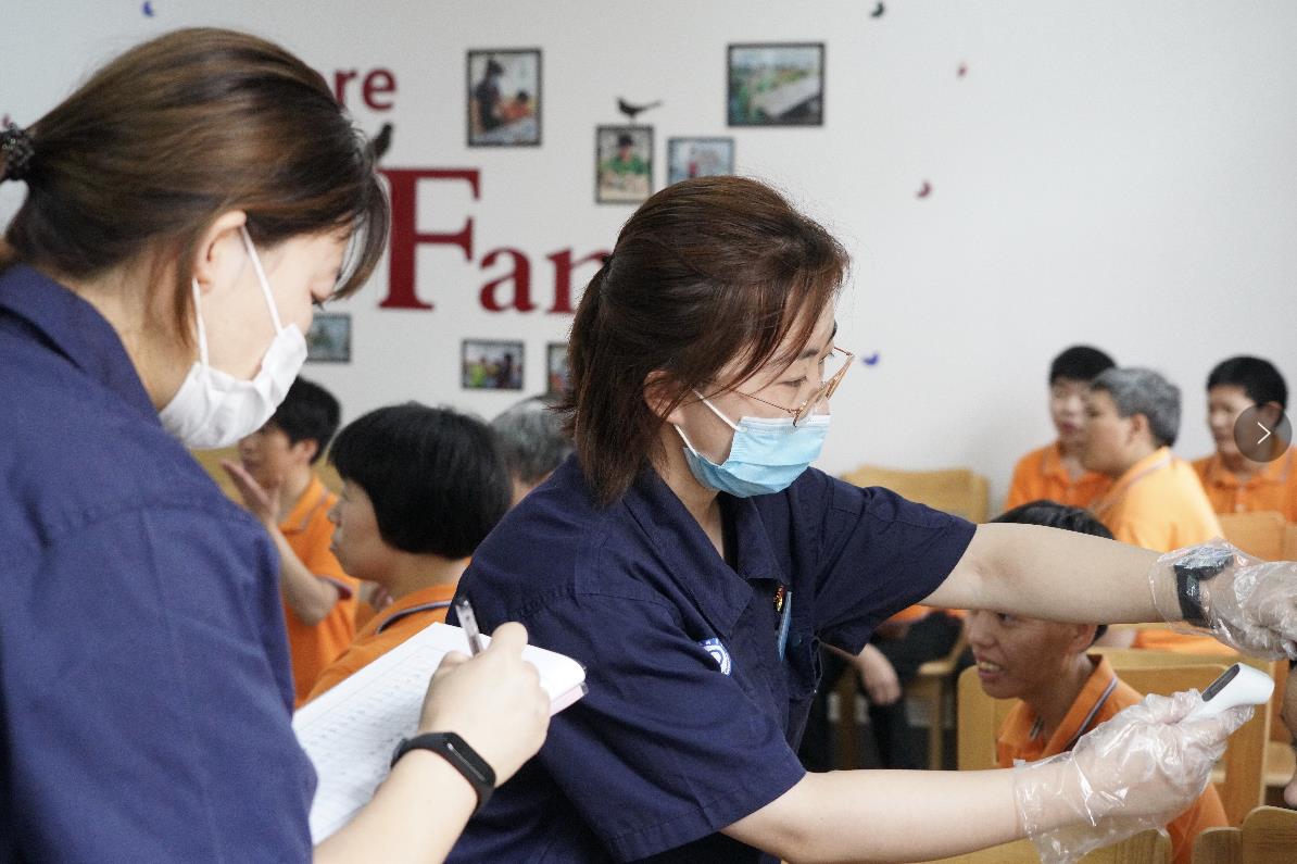 记者到访二站正值下午,一天里最热的时段。在社工的带领下,受助人员正在活动室进行健身活动。他们有的跟着社工做手操,有的结对玩拼图,工作人员在一旁挨个给他们测量体温。清凉的空调、解暑的绿豆汤,以及营养师根据他们身体情况定制、七天不重样的营养餐、老人餐,保障了他们能安然度夏,每个人的精神状态都不错。